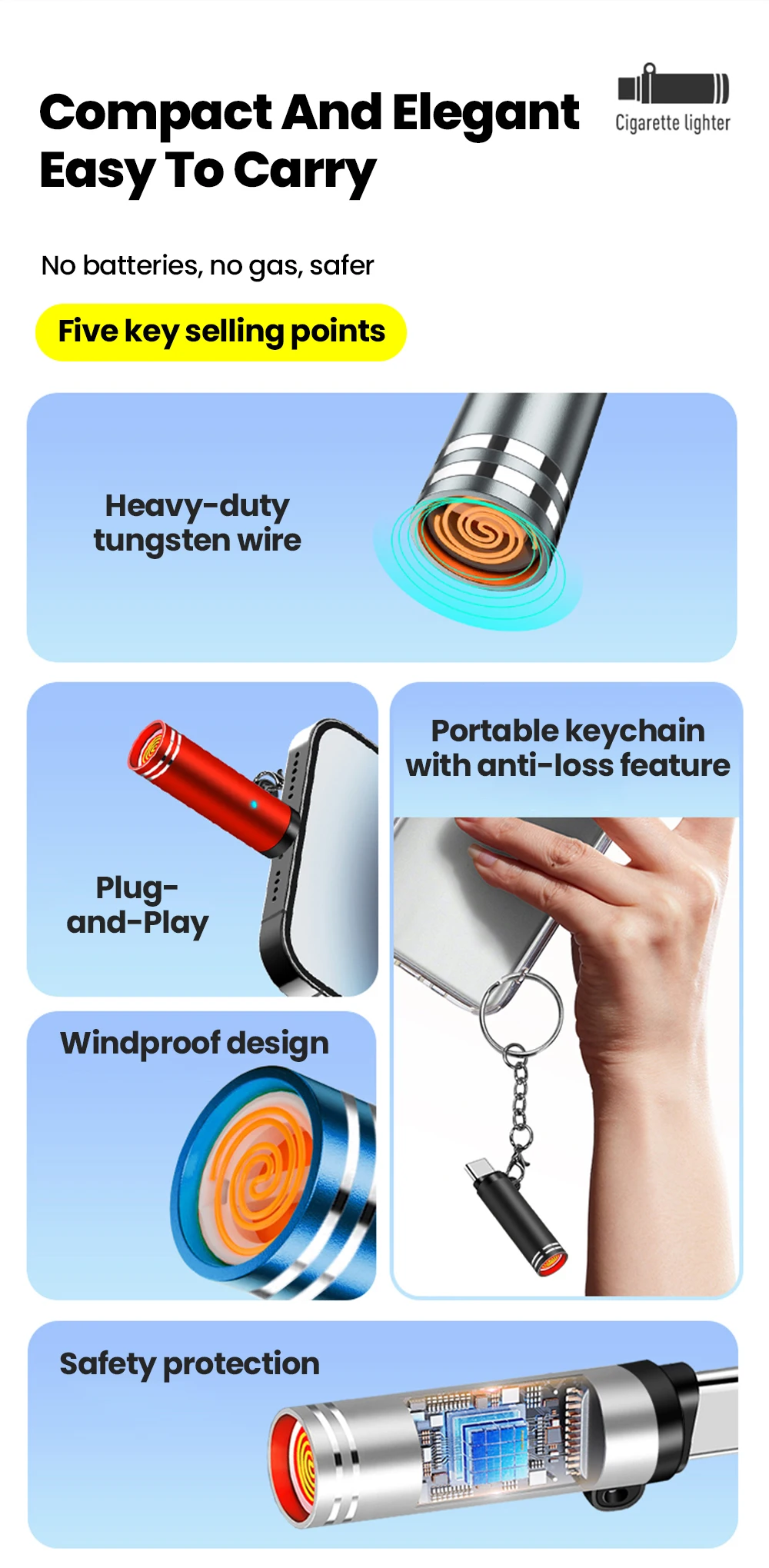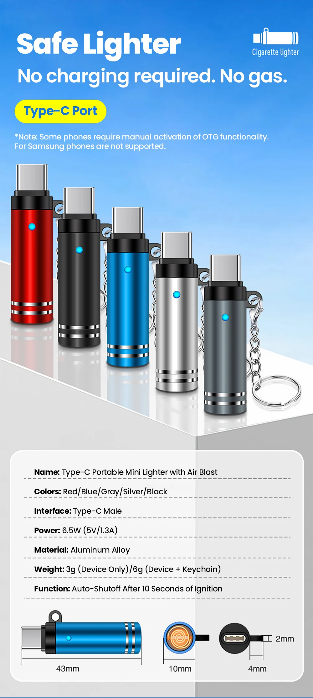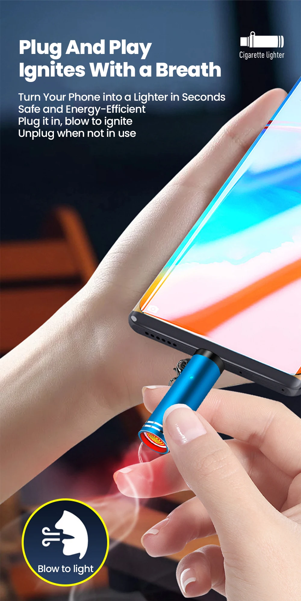 Nombre del producto: Mini encendedor de cigarrillos portátil con soplado de aire tipo C