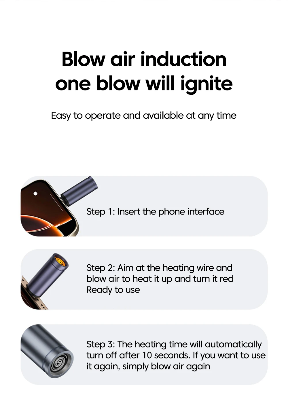 Paso 3:El tiempo de calentamiento se apagará automáticamente después de 10 segundos.Si quieres usarlo nuevamente, simplemente sopla aire nuevamente.