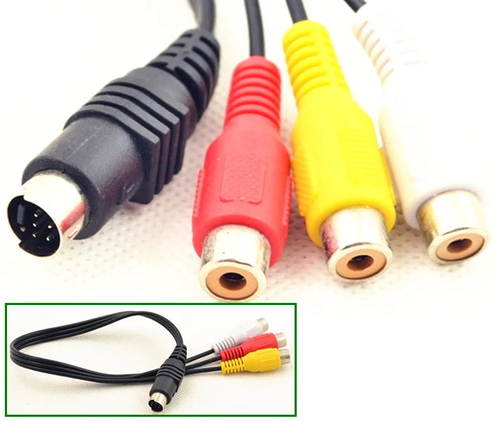 Comprar Mini enchufe DIN s-video de 7 pines a 3 RCA, Cable s-video de 7 pines macho a 3 RCA hembra, adaptador de Cable de Video compuesto RGB para DVD, DV