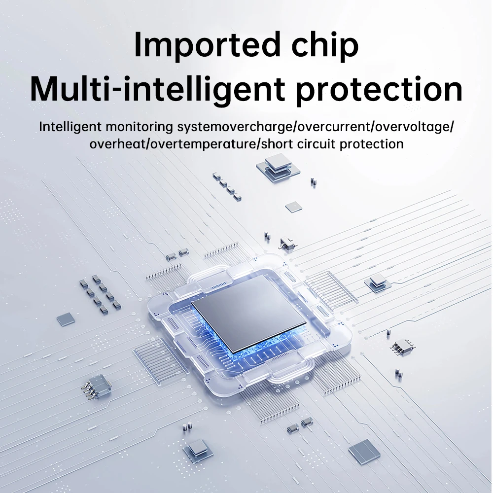 3.El chip inteligente incorporado detecta automáticamente los dispositivos conectados y optimiza la distribución de energía, y también tiene una función de recordatorio de bajo consumo de energía para gestionar eficazmente el uso de energía.
