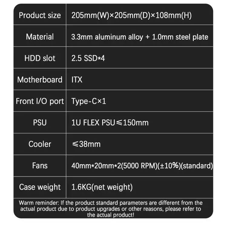 Tamaño del producto: 205 mm (ancho) * 205 mm (profundidad) * 108 mm (alto)