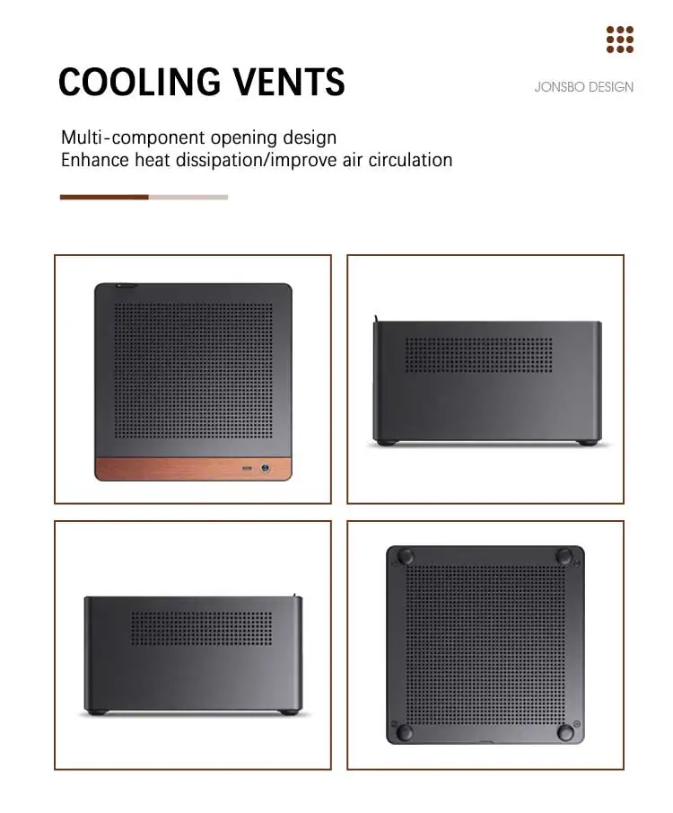 Estuche de muy buena calidad, no encontré defectos en la parte de madera como había leído en algunos comentarios. Por otro lado, hay un problema importante con la ventilación del estuche. Monté una PC de escritorio con un procesador overclockeado (65W) y se calienta demasiado. Los orificios en el panel de la placa base son demasiado pequeños. Para aquellos que estén interesados, hice una cara impresa en 3D y ya no hay más problemas (ver foto). El modelo está disponible en Cults 3D.