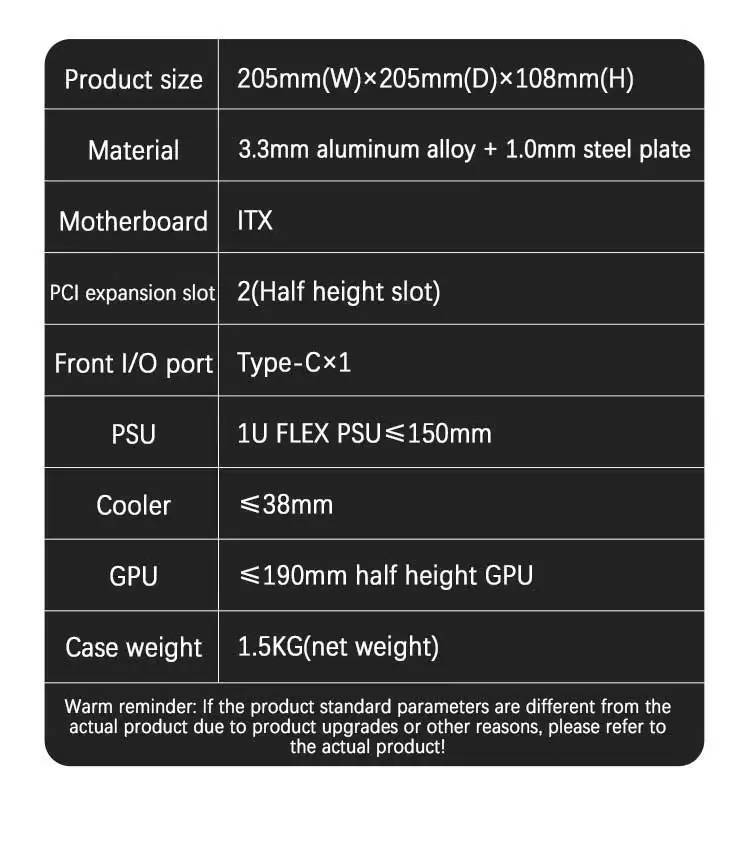 El estuche es pequeño y adorable. La construcción no fue difícil en comparación con su tamaño. La caja llegó en buenas condiciones. Es decepcionante que, debido a la naturaleza de las cajas ITX, la disipación de calor sea importante, pero hay suficiente espacio para instalar ventiladores adicionales de 40mm x 10mm, sin embargo, no hay soporte para montarlos. Temporalmente, fijé tres ventiladores de 40mm al lado de la GPU con cinta adhesiva, pero en comparación con la RTX 5060, que antes alcanzaba los 92 grados a plena carga antes de la instalación, ahora fluctúa alrededor de 80 grados incluso a plena carga. Lo más importante es que el case en sí se siente mucho más fresco. Si hay planes de revisión, sería bueno reflejarlos de esta manera.