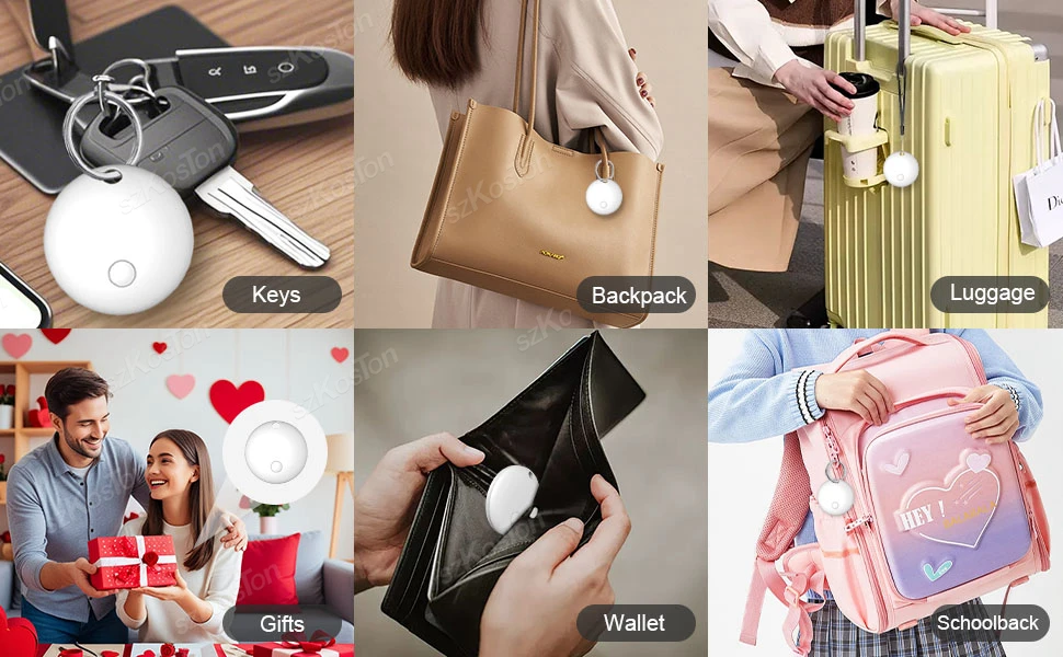 Seguimiento global y alertas inteligentes: rastrea tu artículo perdido en cualquier parte del mundo a través de la aplicación Find My (los dispositivos Apple deben estar cerca).Cuando el objeto perdido está cerca, puedes reproducir un sonido fuerte para localizarlo rápidamente.Además, el rastreador inteligente cuenta con el recordatorio del derrame izquierdo, que le notificará cuando deja los artículos a cierta distancia.
