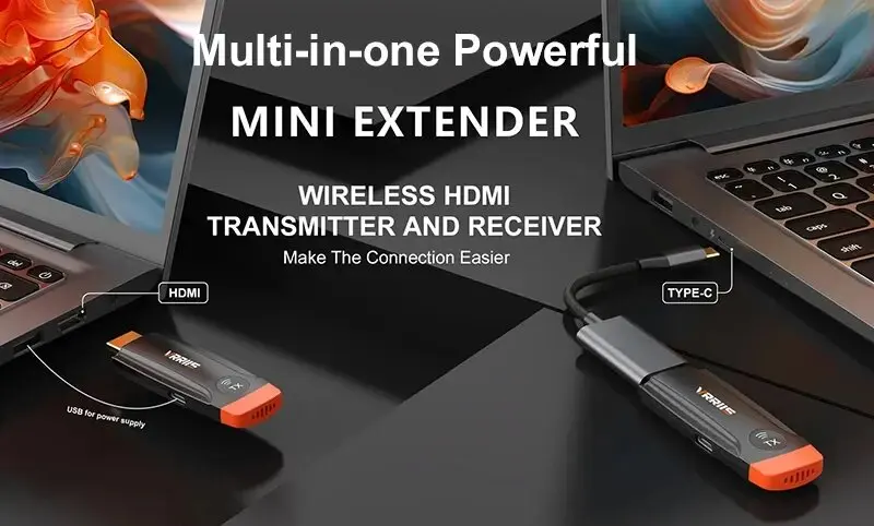 Comprar Mini extensor HDMI inalámbrico de 60m, transmisor y receptor de vídeo, adaptador de pantalla tipo C para Iphone 15 16, portátil, PC a proyector de TV