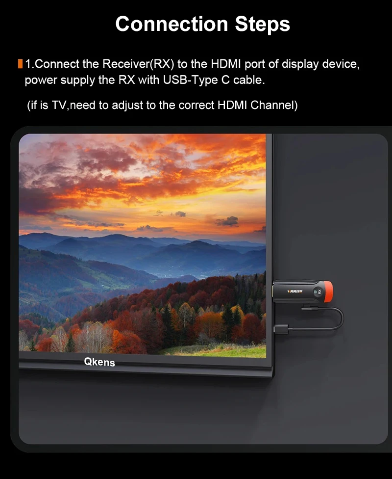 Este transmisor HDMI inalámbrico admite entrada 4K 30Hz y el receptor admite salida Full HD de 1080P/60Hz,