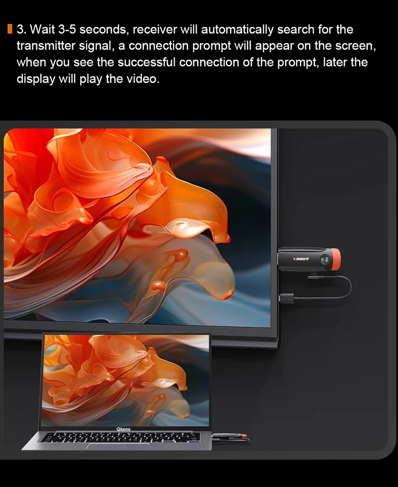 Este transmisor y receptor HDMI inalámbrico no necesita aplicaciones complejas, conexión Bluetooth o Wi-Fi;