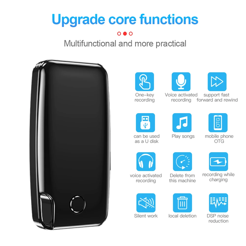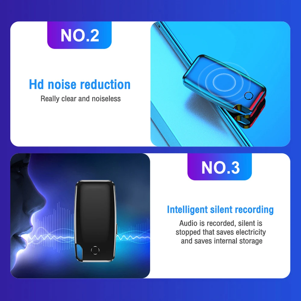 Comprar Mini grabadora de voz Digital activada por voz, dictáfono profesional Ultra delgado, grabación de reducción de ruido HD, reproductor MP3, 16G, 32G, 64G