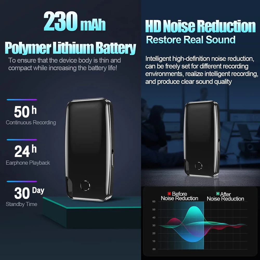 Mini grabadora de voz Digital activada por voz de 50 horas, 16G, 32G, 64G, dictáfono profesional ultrafino, reproductor de MP3 con reducción de ruido HD