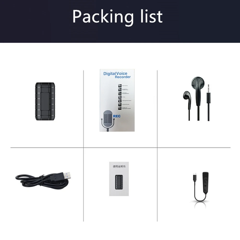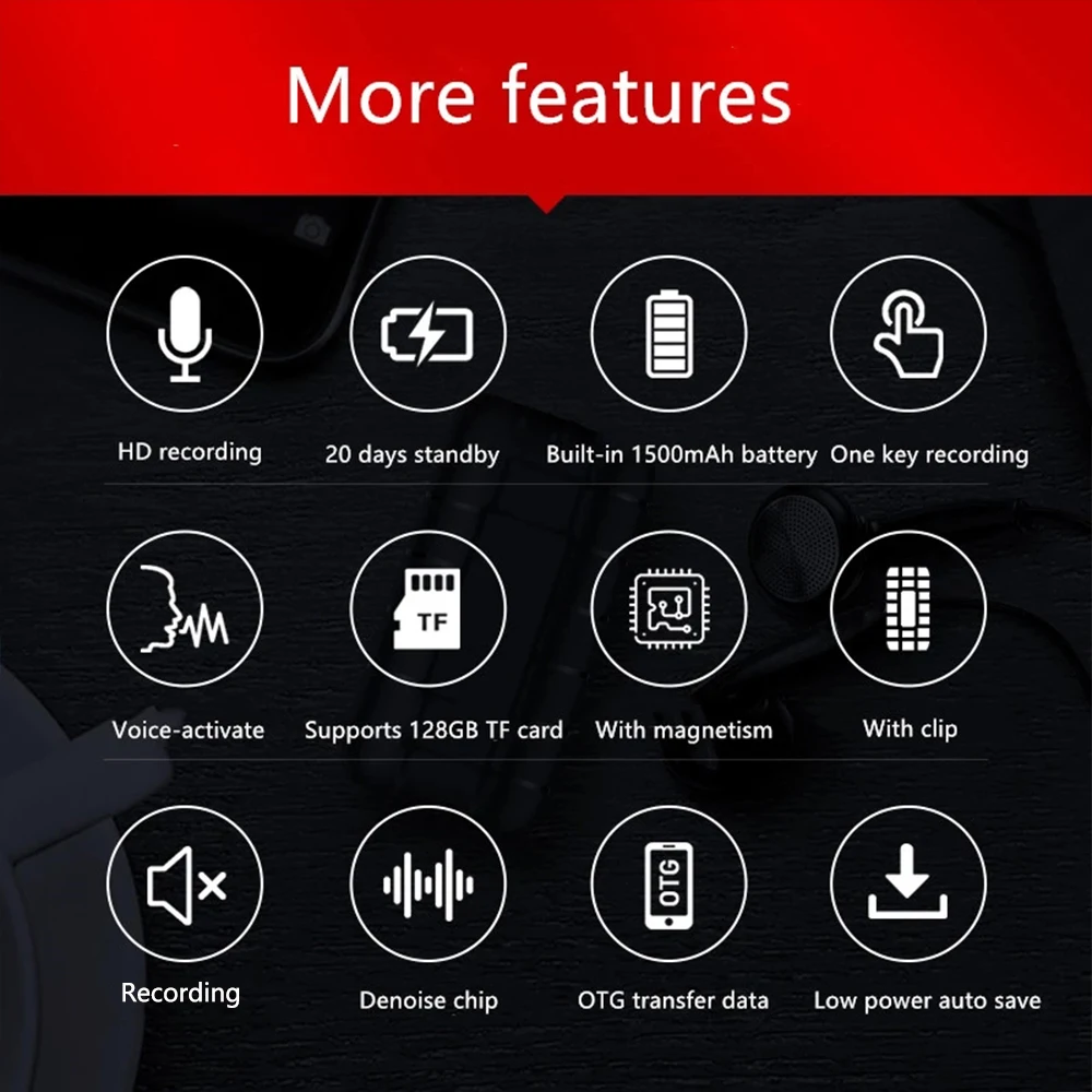 Característica:1. Tecla para comenzar a grabar Una/guardar, botón de grabación independiente activado por voz, fácil de usar.