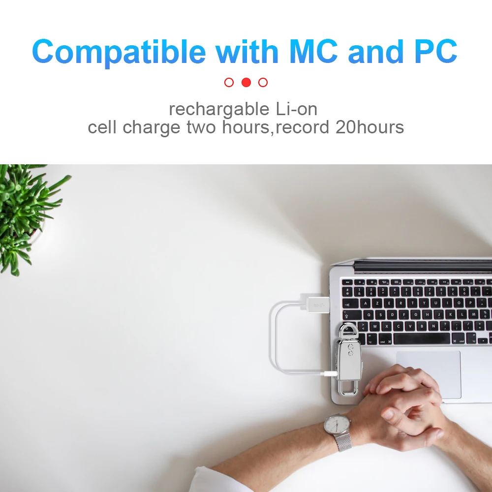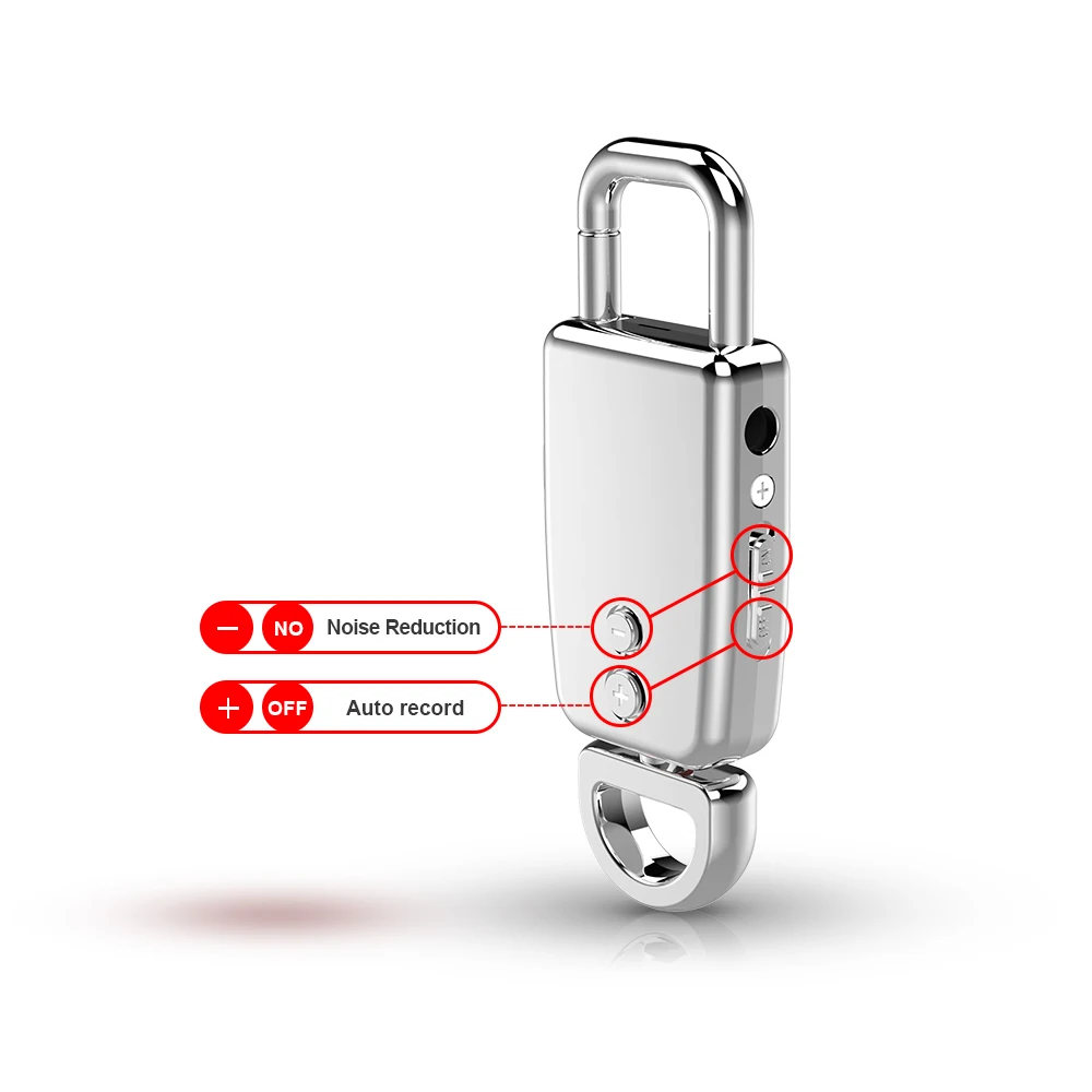 Características del producto 1. Material de aleación de zinc, proceso UV, negro, plata 2. Grabación con un clic con función de eliminación e indicador LED de reproducción 3. Grabación ADPCM 192Kbit, grabación de control de voz opcional 50DB, grabación de segmentación automática, grabación de cobertura de bucle 4. 20 horas de grabación continuas, 30 días de espera, 8GB de capacidad (90 horas de almacenamiento de grabación) 5. Admite reproducción de MP3, WMA, WAV y reproducción rápida de avance y retroceso 6. Con una marca de tiempo, el nombre del archivo de grabación se nombra después de la hora.