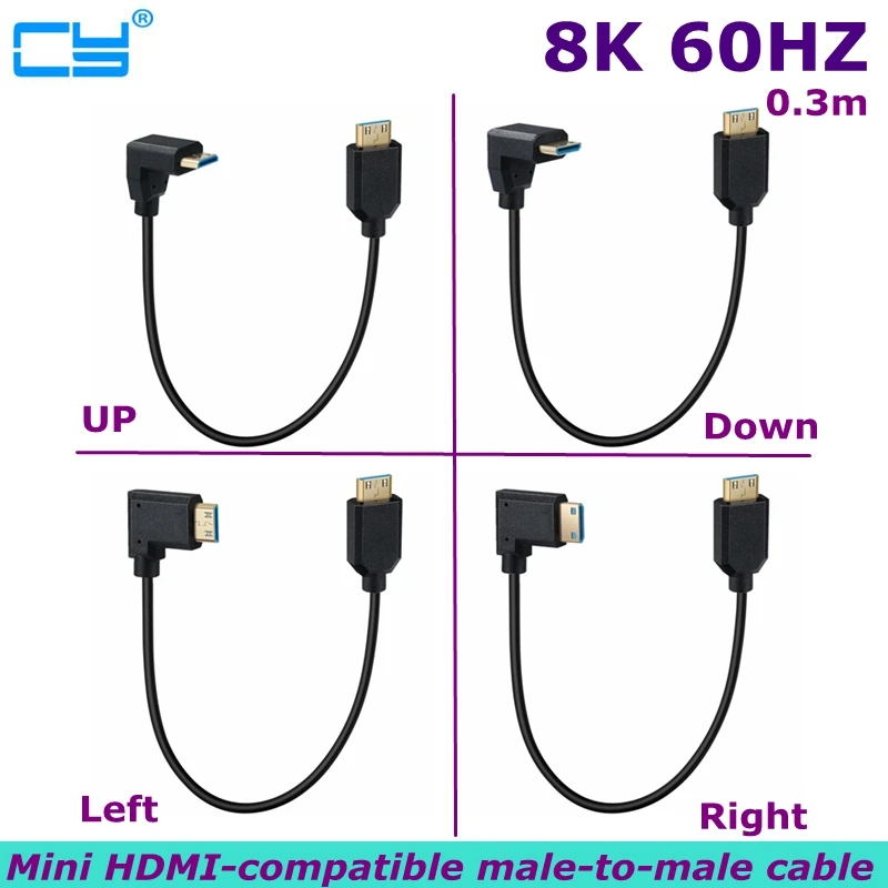 Comprar Mini HDMI en ángulo Compatible con macho a macho Compatible con 8K/4K 60Hz/120Hz Cámara gráfica, teléfono móvil, tableta PC od4.0 mm Cable HD