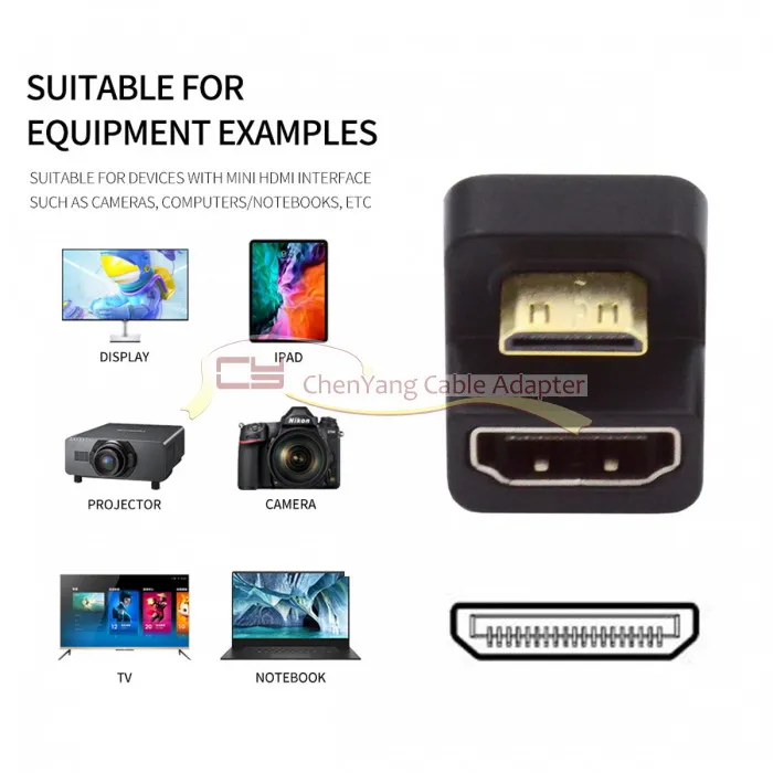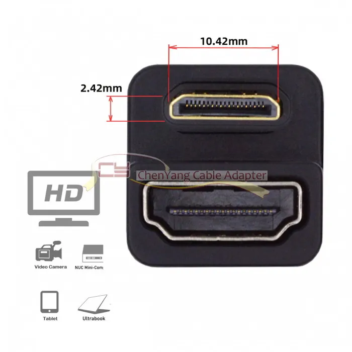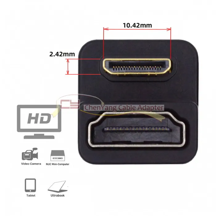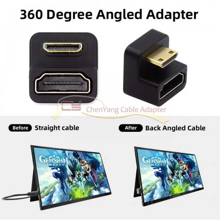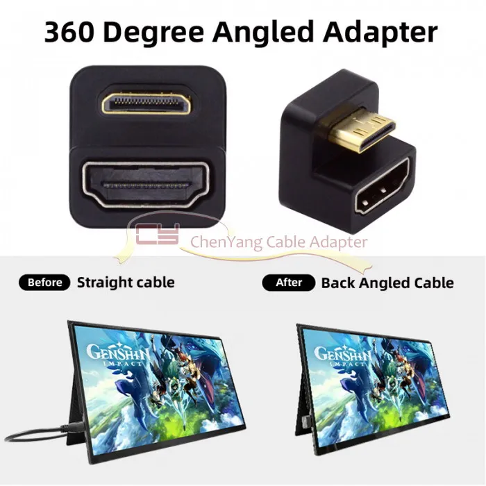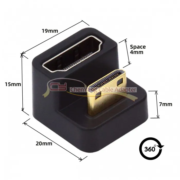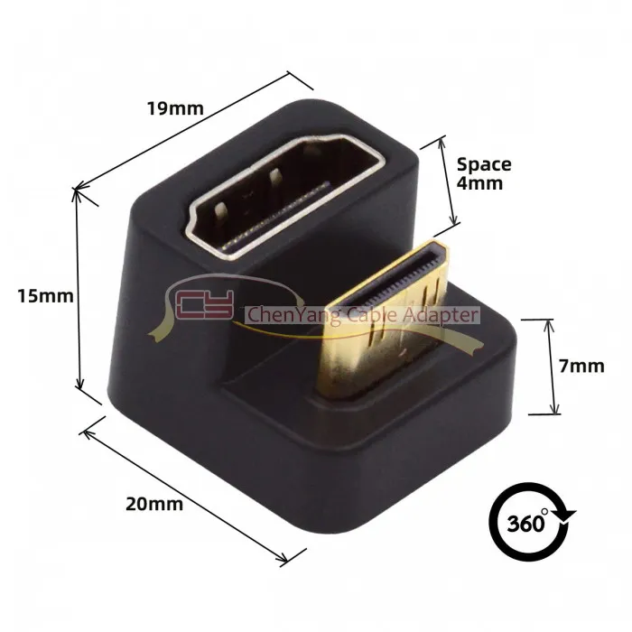 Comprar Mini HDTV 360 macho a hembra, convertidor de adaptador de extensión de 1,4 grados hacia arriba/abajo, forma de U opuesta, ángulo trasero