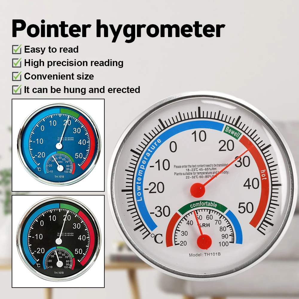 Comprar Mini higrómetro termómetro de puntero redondo -30 ℃ -50 ℃ Termómetro 20%-100% Higrómetro Monitor de humedad para oficina interior