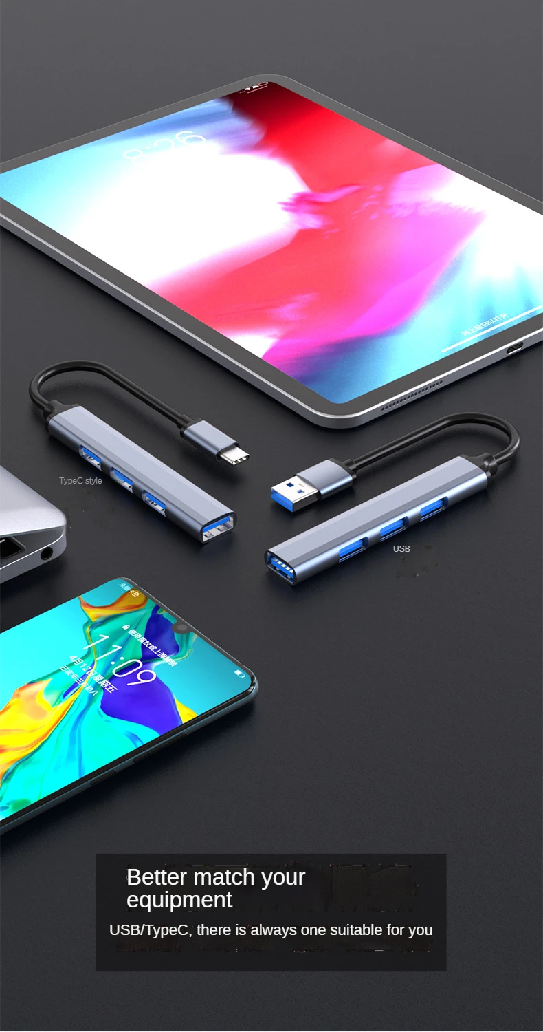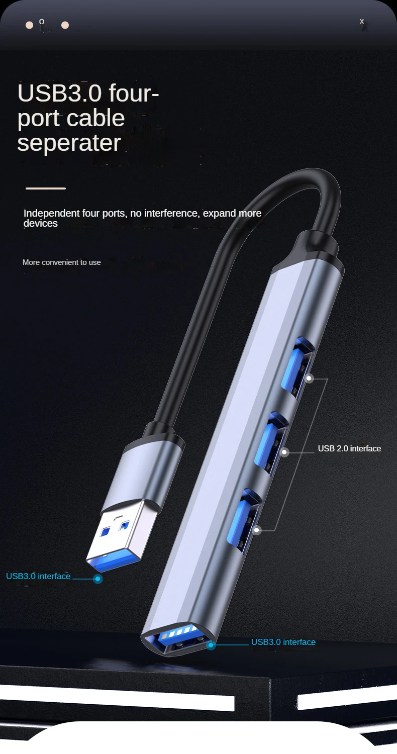 Comprar Mini Hub USB 3,0 de 4 puertos, adaptador de cargador rápido de aleación de aluminio, divisor portátil, fuente de alimentación de 5Gbps, para ordenador portátil, ratón
