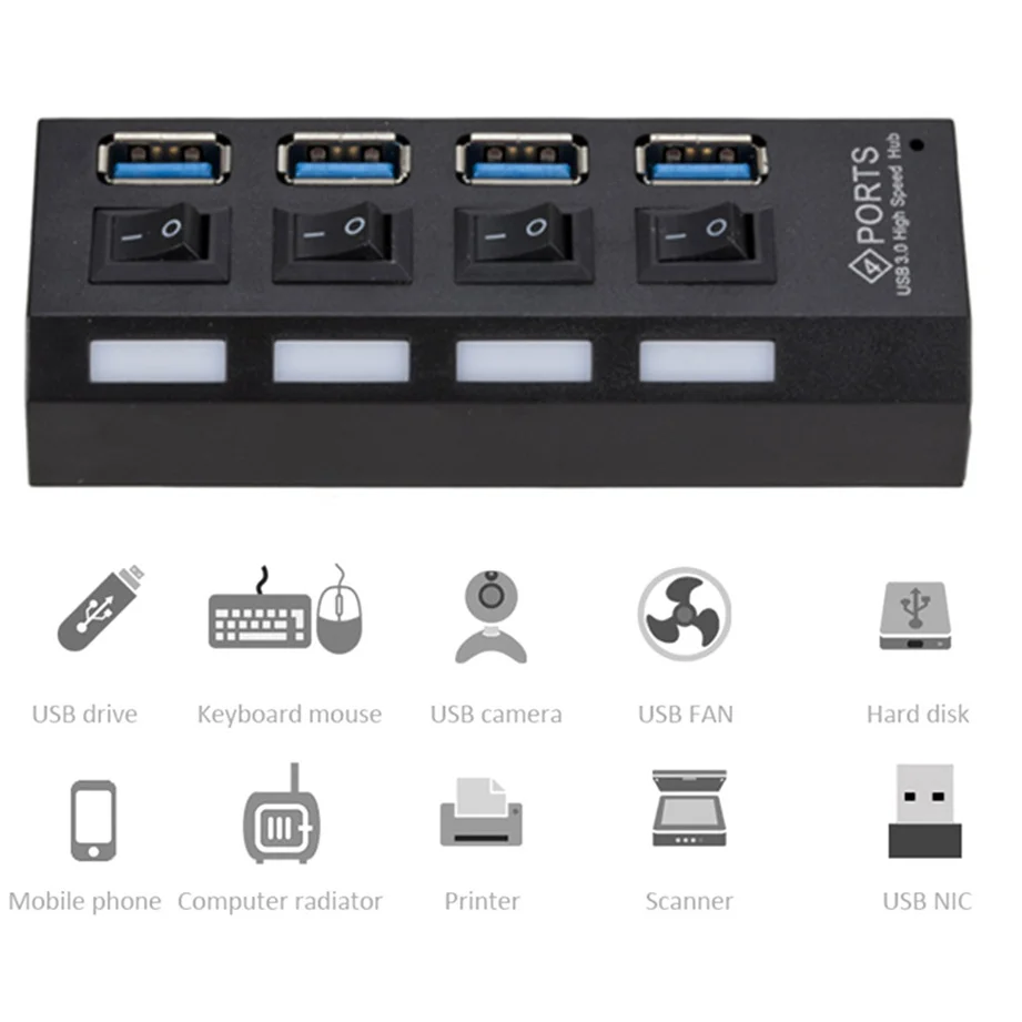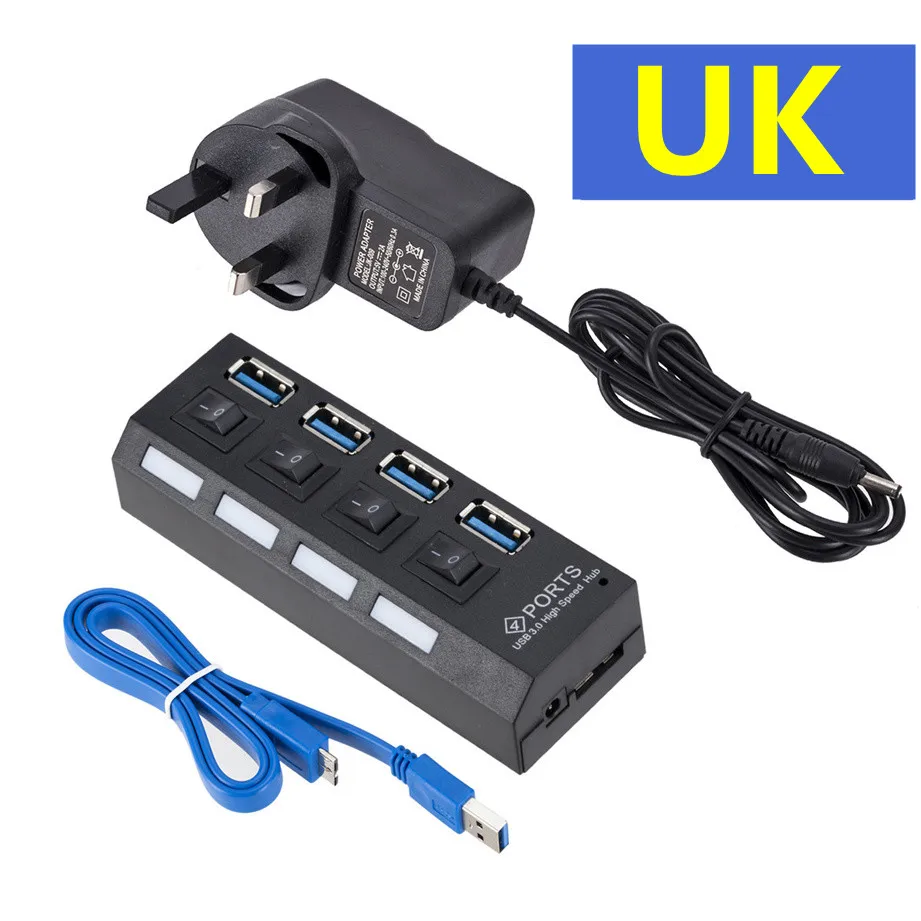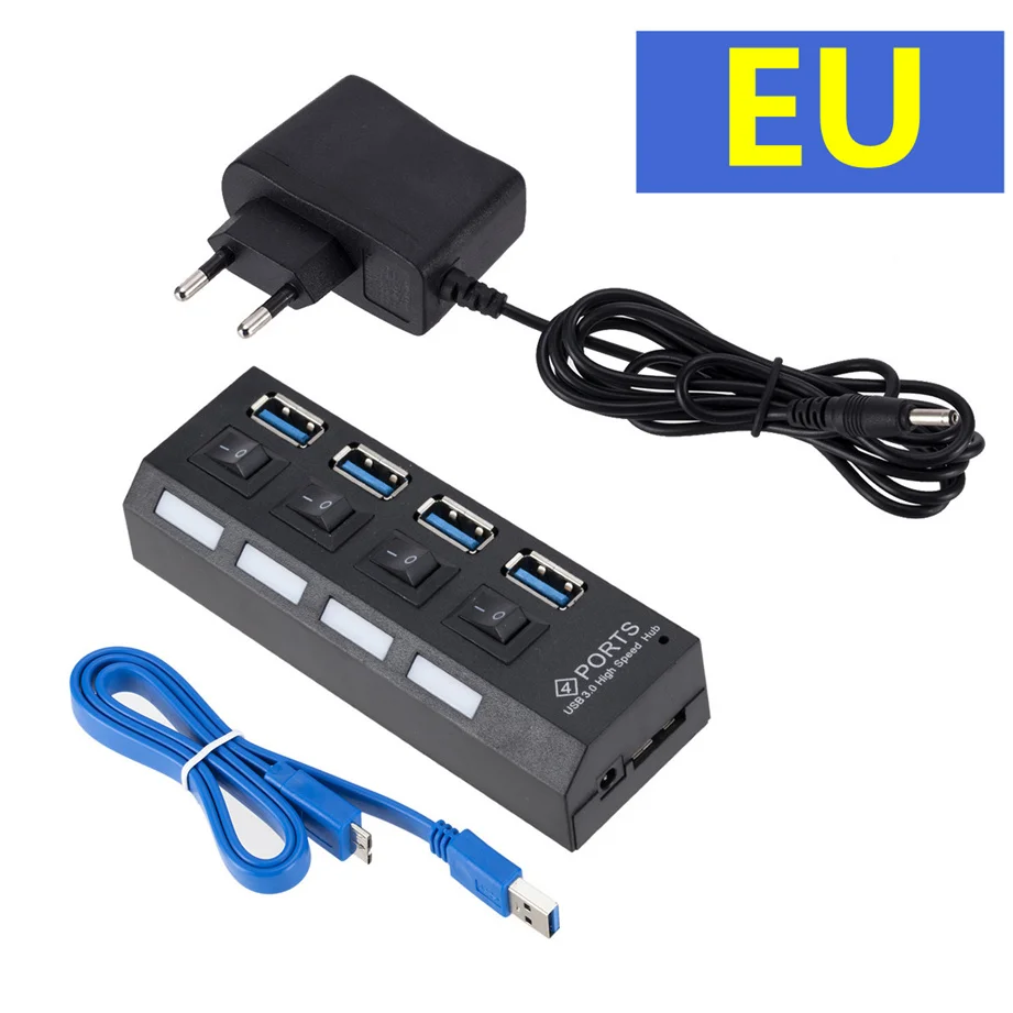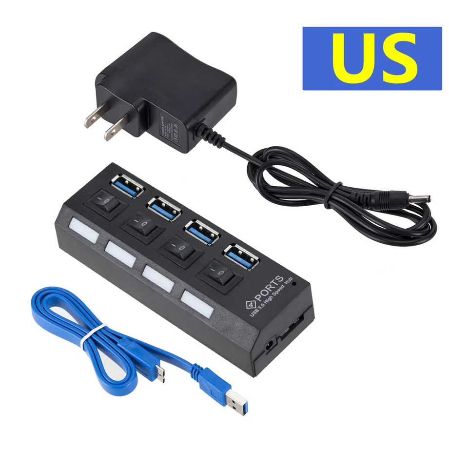 Comprar Mini HUB USB 3,0 de alta velocidad, 5gbps, usb3.0, 4 puertos, portátil, Micro USB 3,0, divisor con adaptador de corriente externo para PC Acc