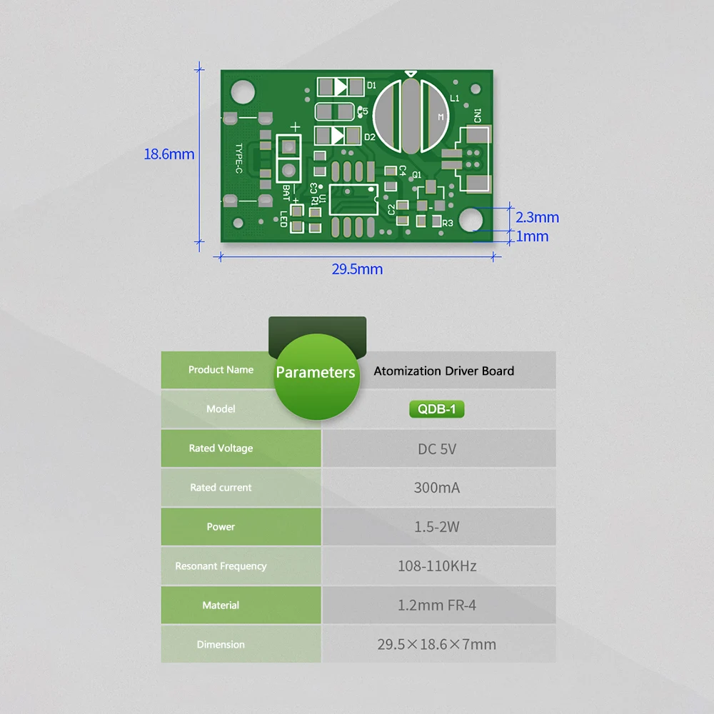 2.Esta es una versión mejorada del módulo de accionamiento de atomización, después de la actualización, la interfaz UCB tipo c es más conveniente de usar y también se puede conectar a la línea externa de 2 pines, y también es adecuada para la microcomputadora de un solo chip del fabricante directamente fuente de alimentación de entrada