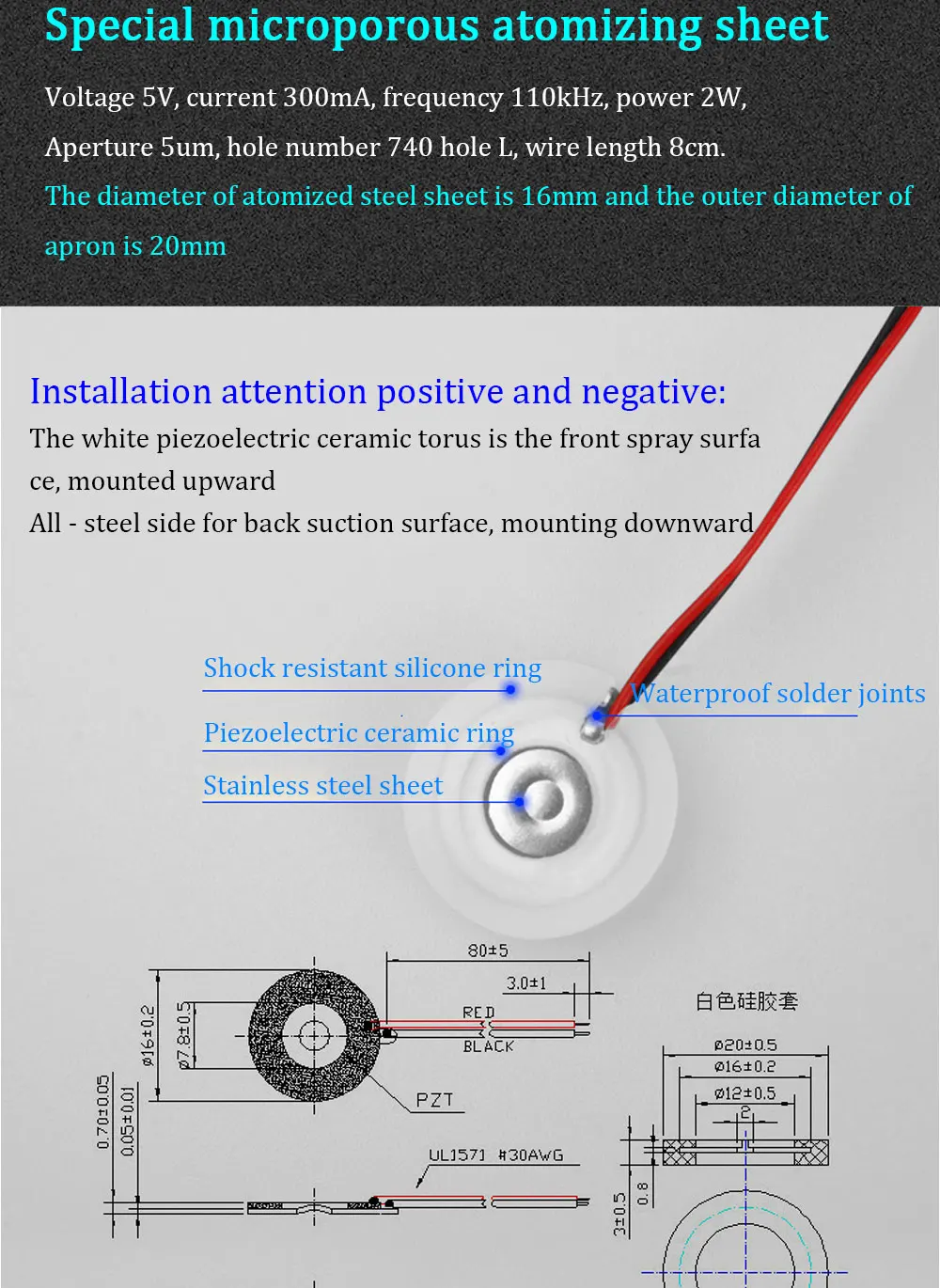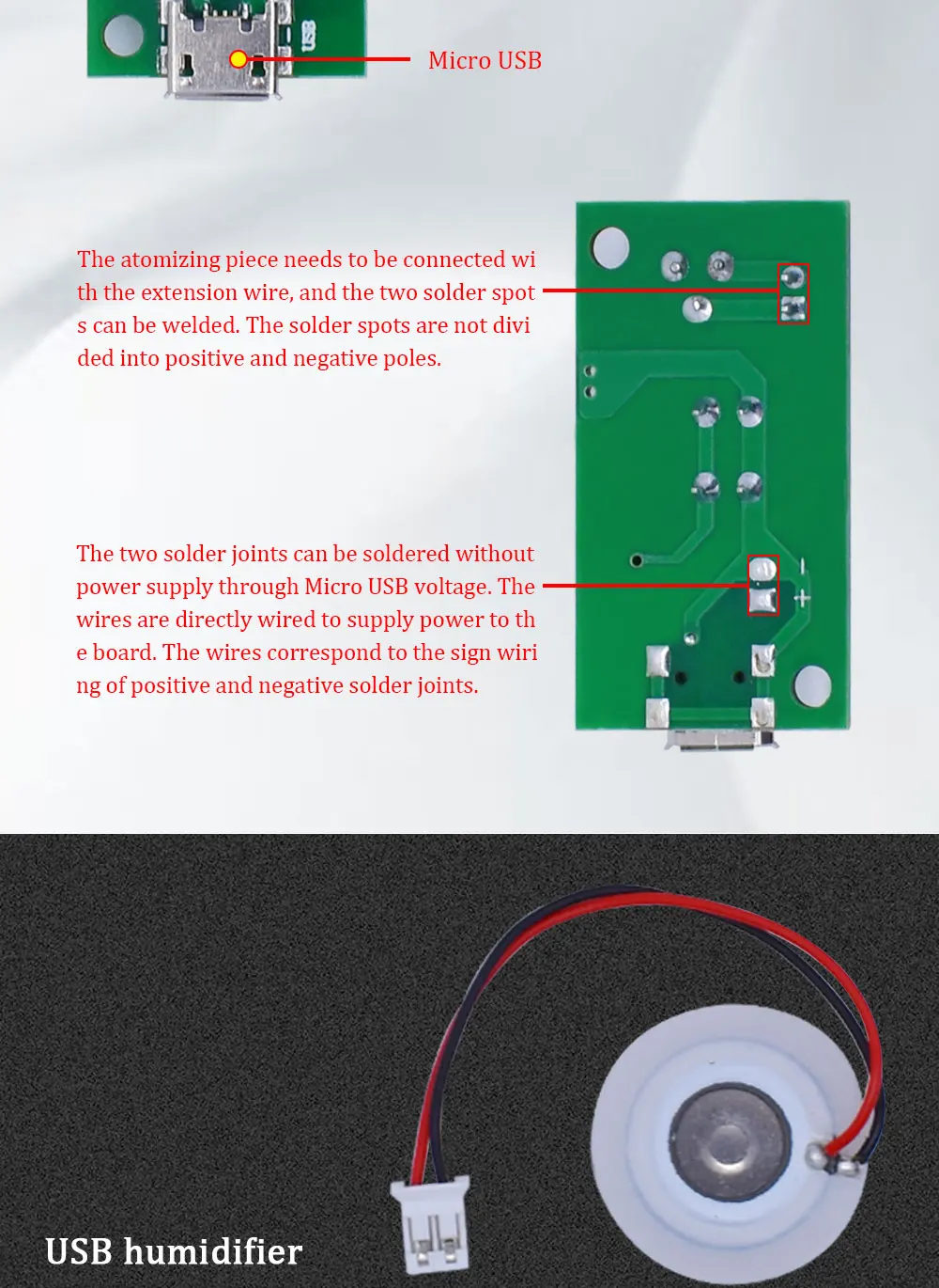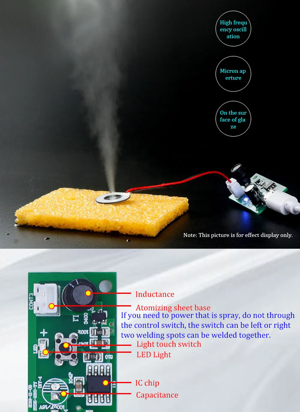 Mini humidificador USB, Kits de bricolaje, generador de niebla y placa de circuito de controlador, película de atomización, hoja de atomizador, Mini oscilante