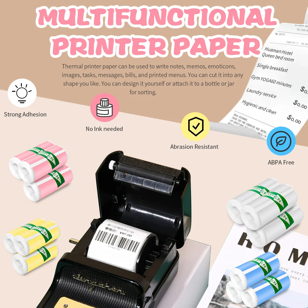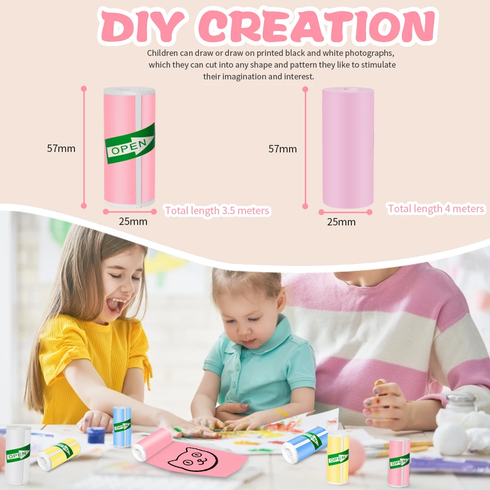 Mini impresora HD de 57x25MM, papel térmico, rollo de papel autoadhesivo, etiqueta adhesiva, foto, impresión sin tinta, impresora portátil, papel de Color