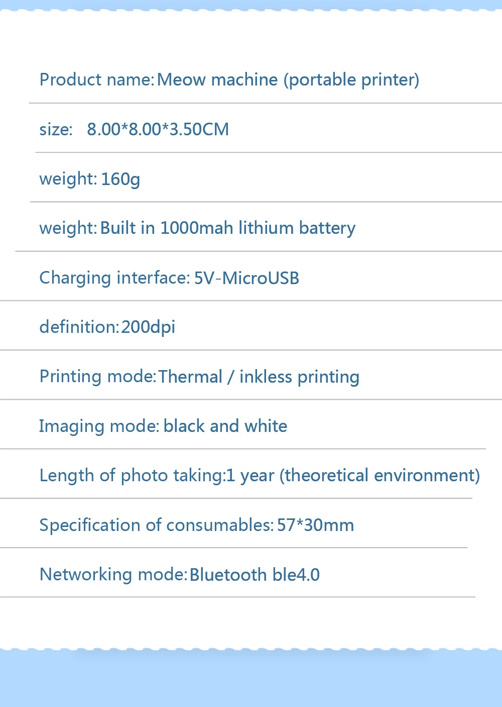 Este producto es una forma única, diseño exquisito, fácil de operar impresora digital para niños, diseñada para productos digitales para niños, para que los niños en uso aprendan más juego de imaginación, experimenta la diversión de la naturaleza.