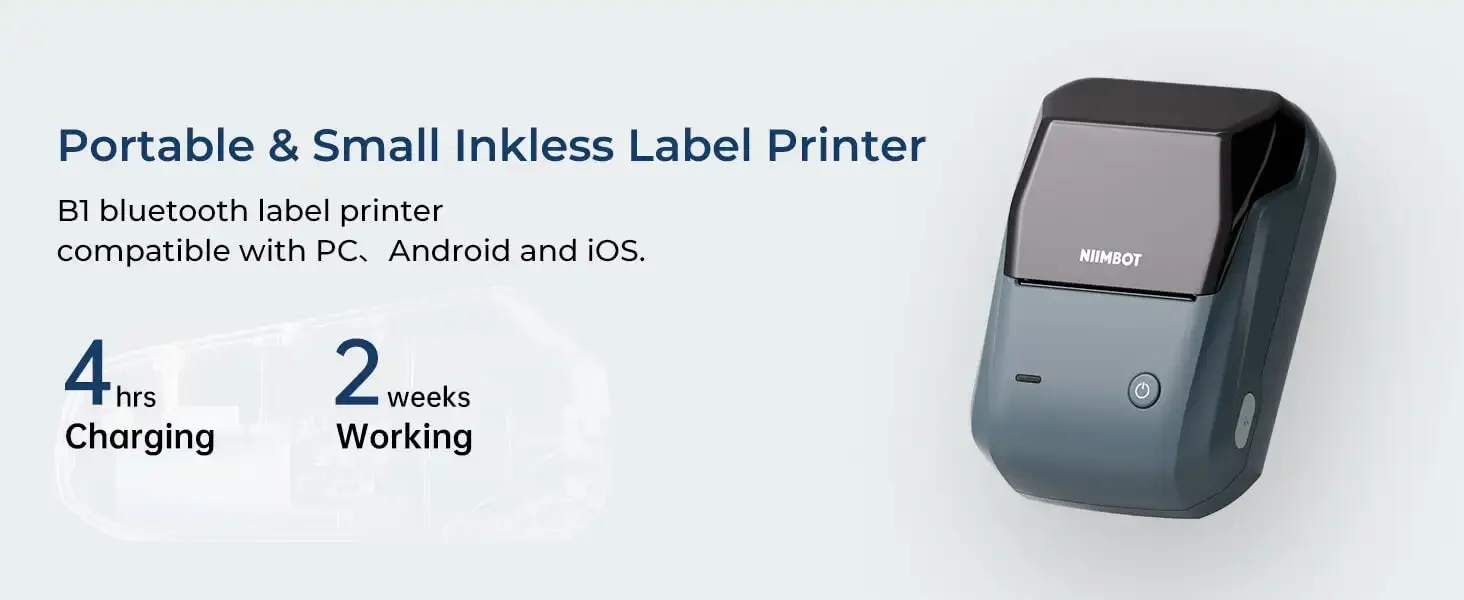 Comprar Mini impresora térmica de etiquetas Niimbot B1, máquina portátil autoadhesiva con Bluetooth para etiquetas adhesivas UV redondas, rollos de etiquetas