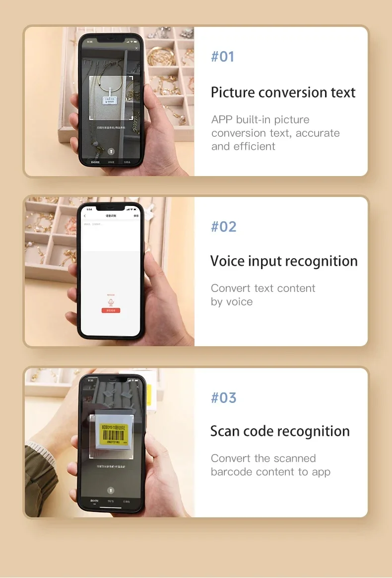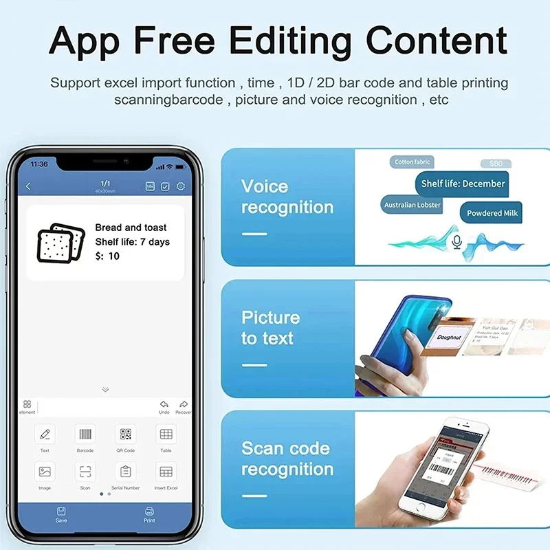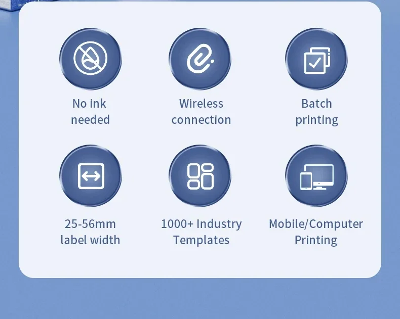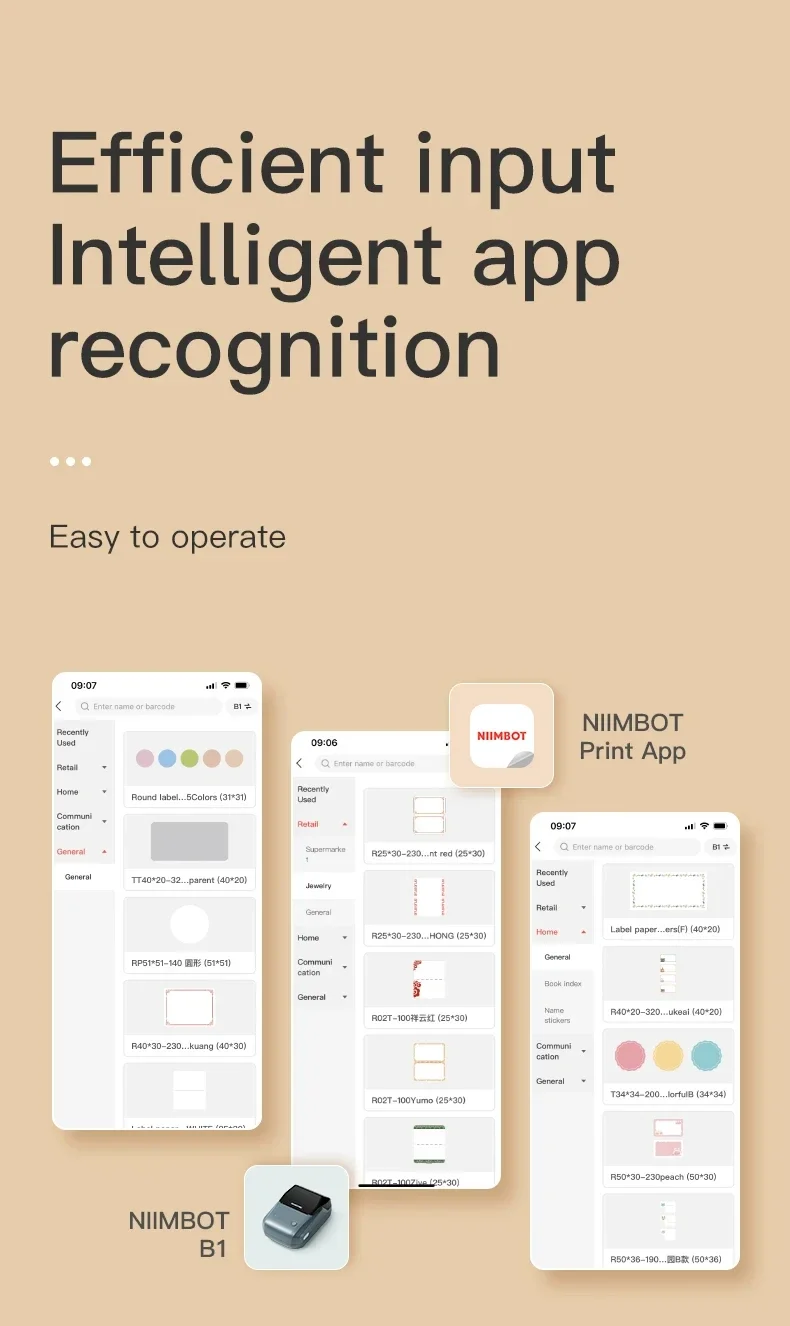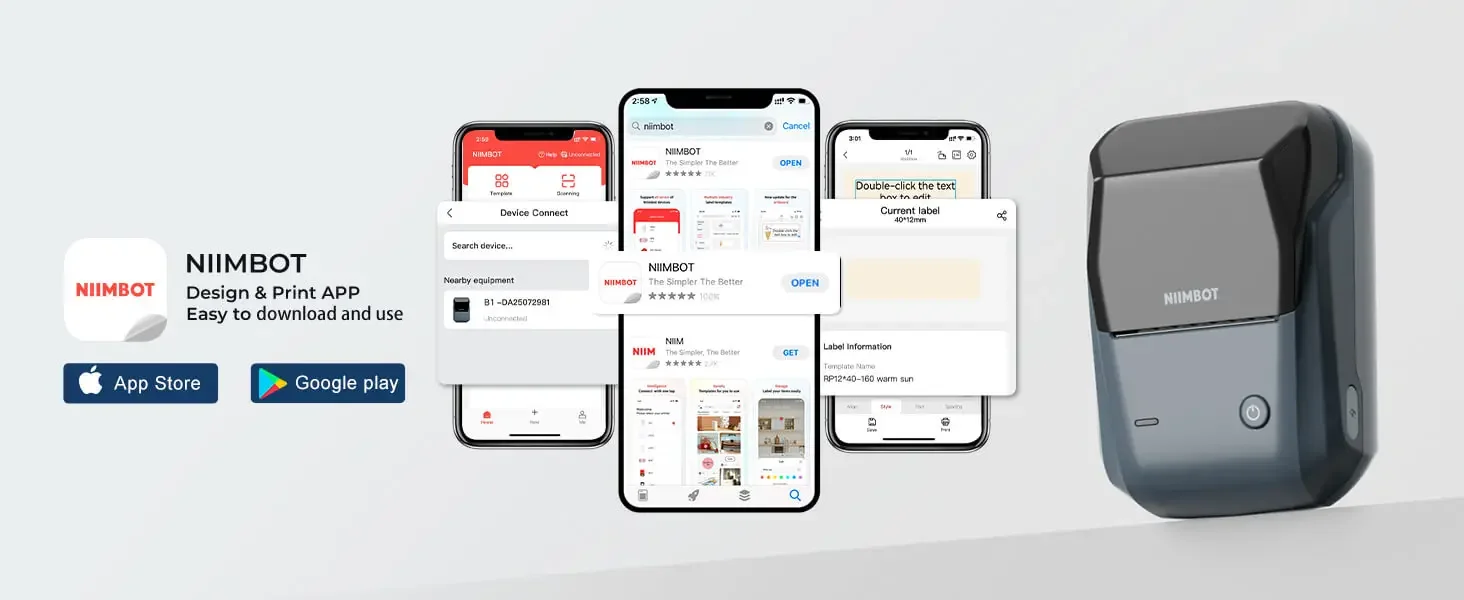 Fácil de usar:Compatible con iOS, Android y PC.La aplicación incluyó más de 30 fuentes/idiomas, más de 100 bordes y más de 1500 símbolos.Solo necesita descargar la aplicación gratuita, elegir y conectar el modelo de impresora B1 desde la aplicación NIIMBOT y luego disfrutar de la impresión.