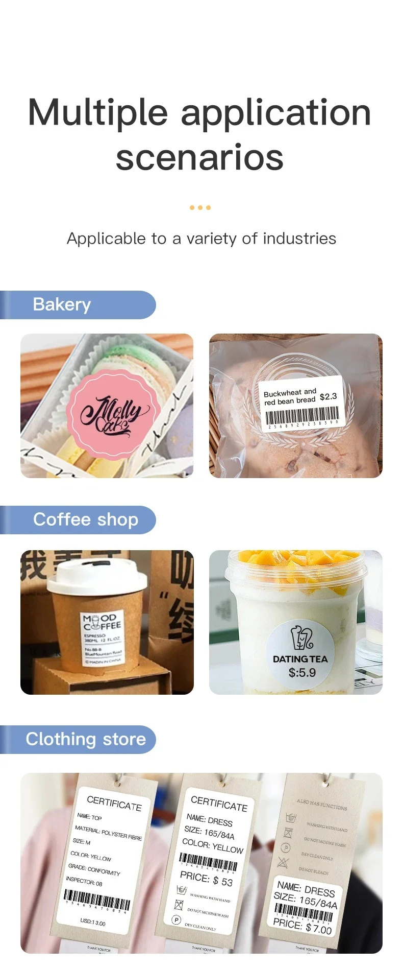 Portátil y pequeño:Ancho de etiqueta de soporte 0,8''-2''.Tamaño de la mini etiquetadora: 5,2*3,6*2,4 pulgadas (13*9*6 cm).Peso: 0,7 libras.