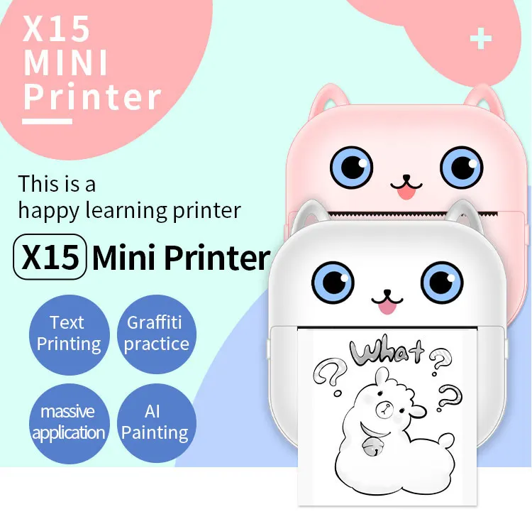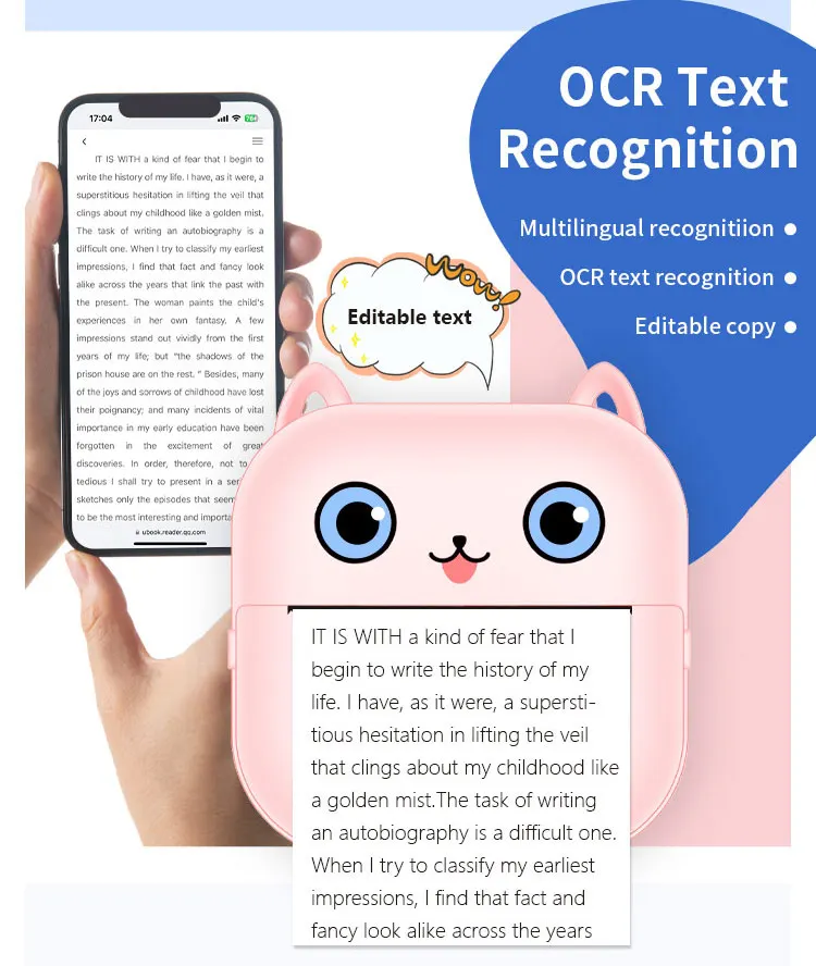 Mini impresora térmica foto etiqueta Memo notas de estudio etiqueta autoadhesiva pregunta incorrecta con cable USB Bluetooth múltiples fuentes BT