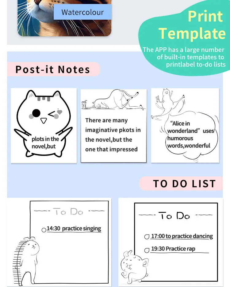 La APp tiene un gran número de plantillas integradas toprintlabel listas de tareas pendientes