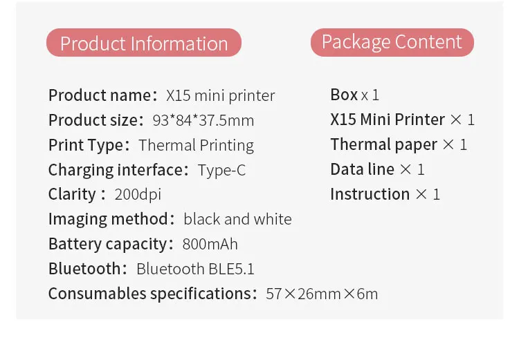 4. Resolución 200DPI, impresión térmica sin tinta, tamaño del papel de impresión: 57mm * 25mm;