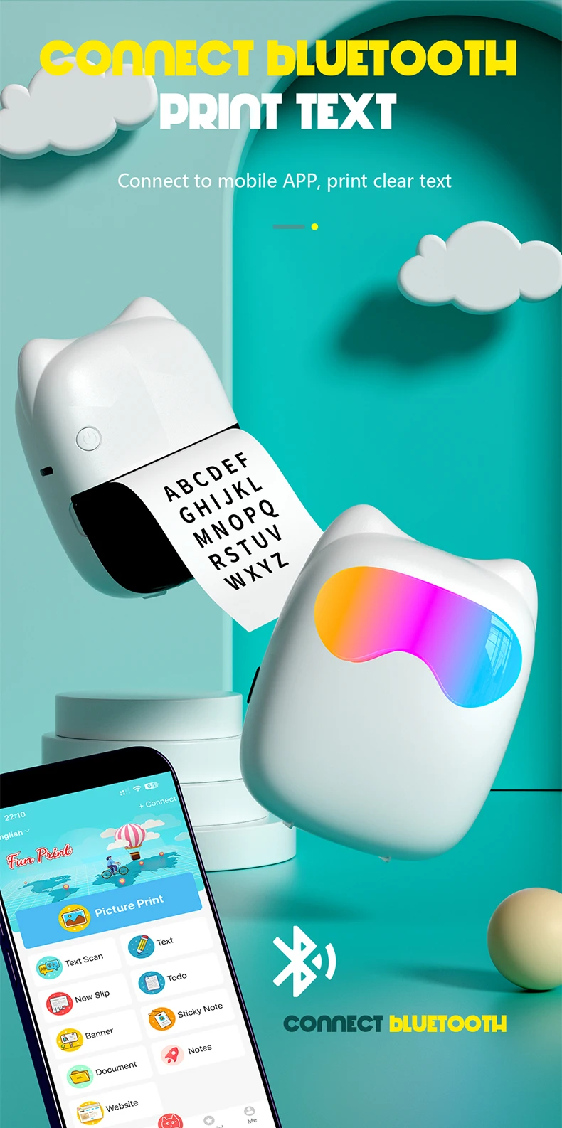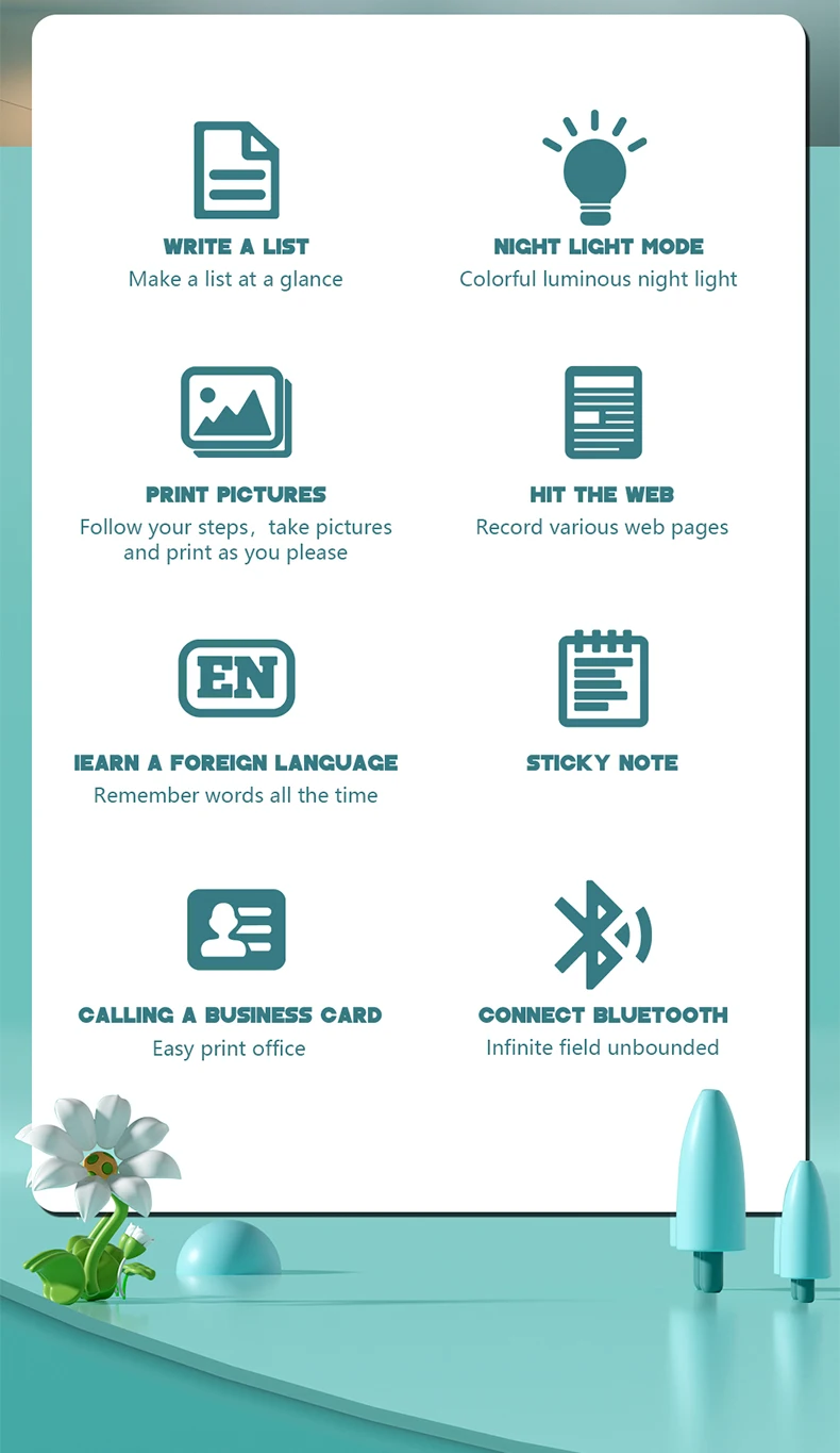 Características: Funciones de impresión de texto como imágenes, texto, páginas web y cuentas, así como conexión Bluetooth para impresión térmica