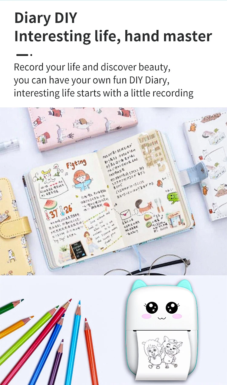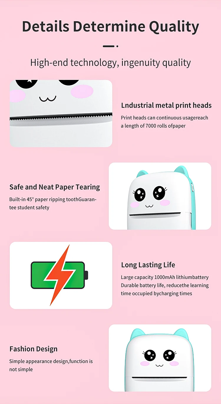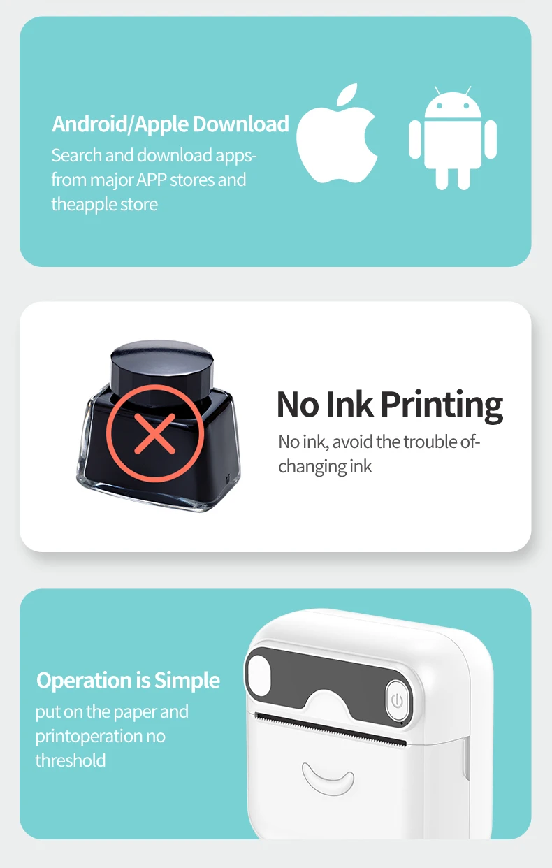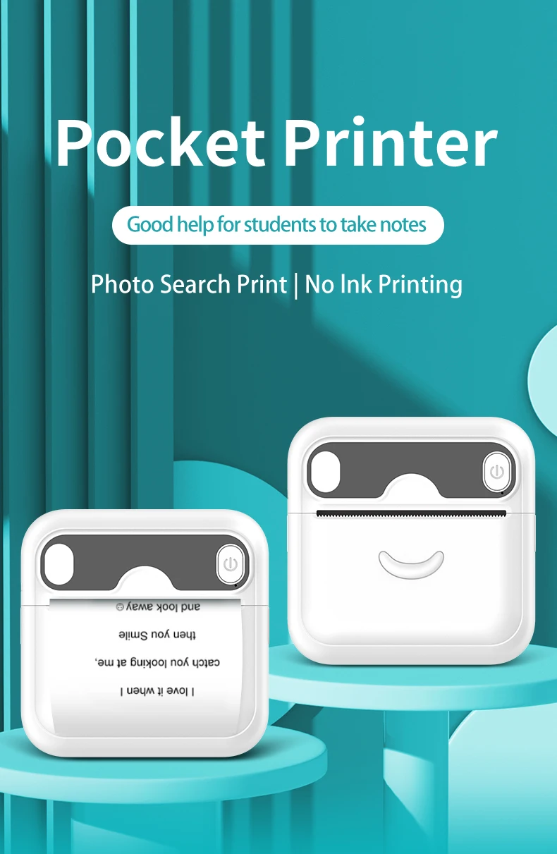 Comprar Mini impresora térmica portátil, máquina de impresión autoadhesiva de bolsillo, sin tinta, con Bluetooth, para Ios y Andrio