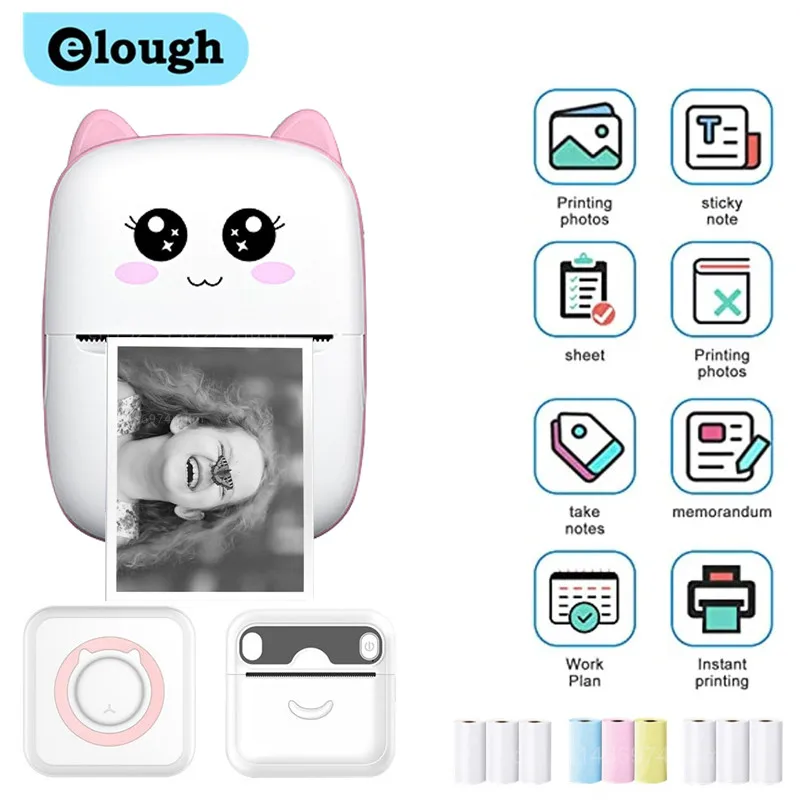 Comprar Mini impresora térmica portátil, máquina de impresión autoadhesiva de bolsillo, sin tinta, con Bluetooth, para Ios y Andrio