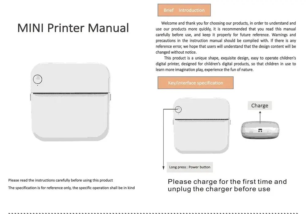 Este producto es una forma única, diseño exquisito, fácil de operar impresora digital para niños, diseñada para productos digitales para niños, para que los niños en uso aprendan más juego de imaginación, experimenta la diversión de la naturaleza.