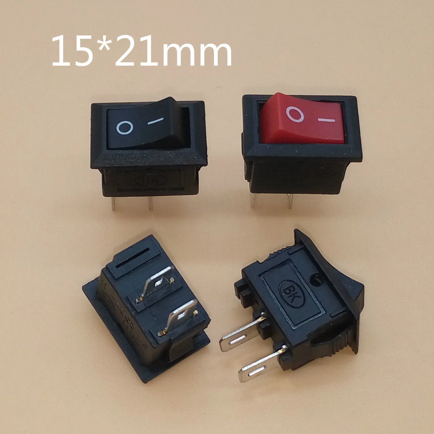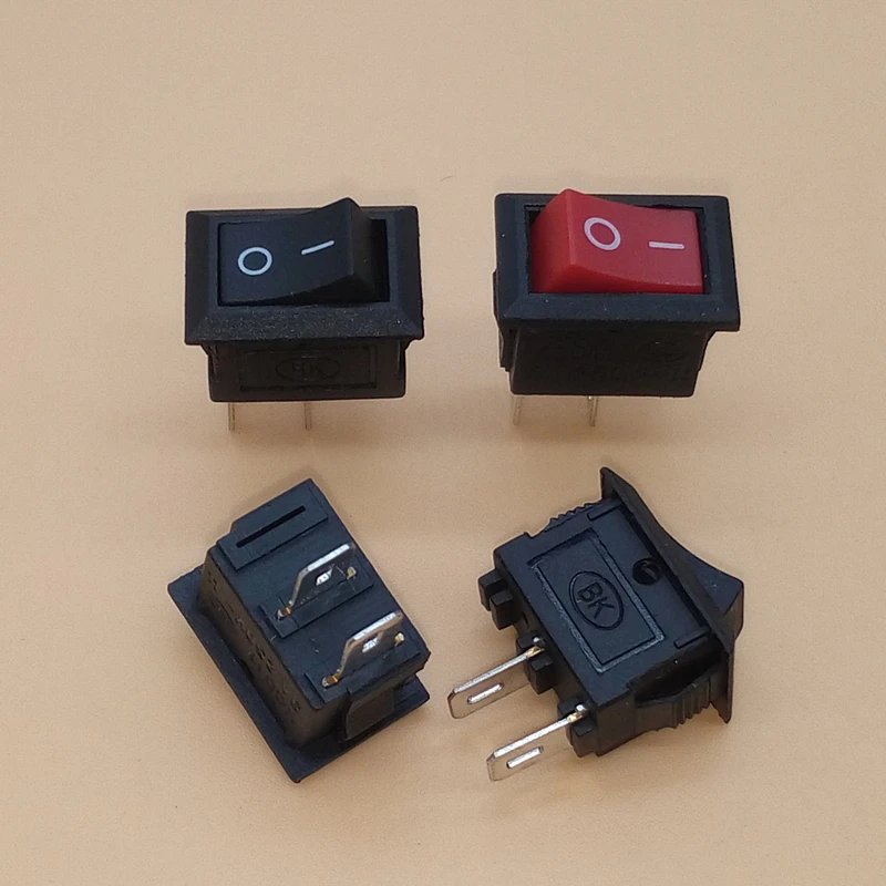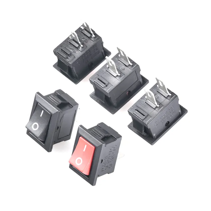 Mini interruptor basculante para barco, interruptor de encendido y apagado de 2 pines, 10 piezas, 6A, 250V CA/10A, 125V CA, 15x21MM, e/O SPST, interruptores a presión, negro y rojo