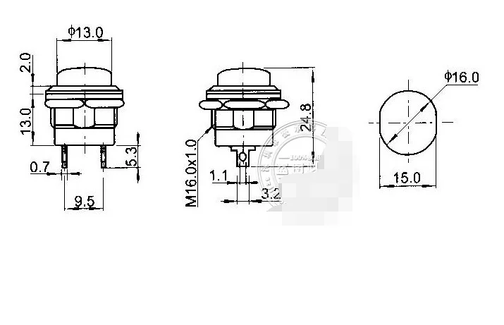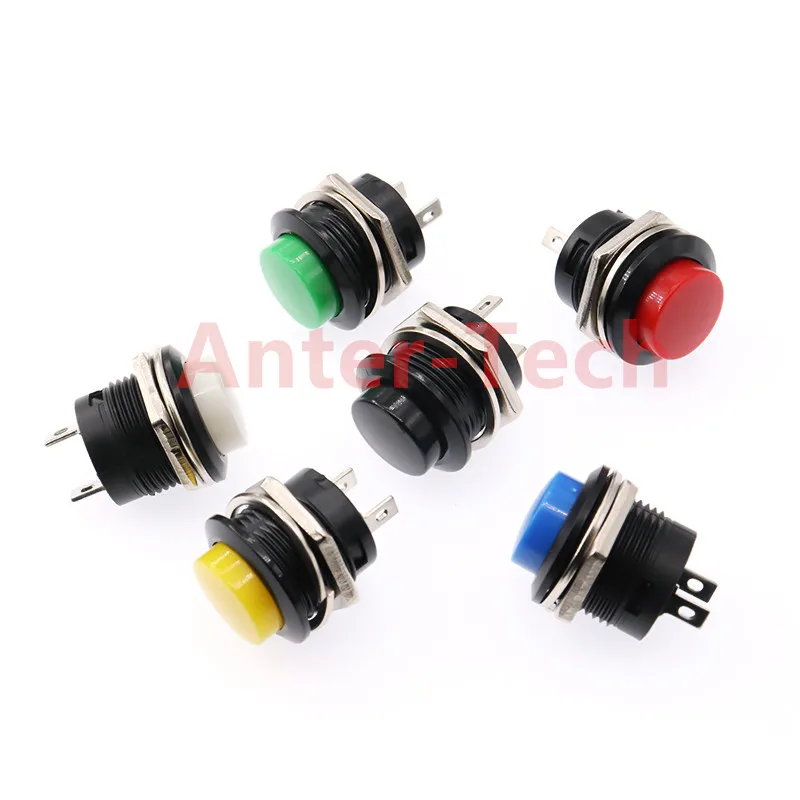 Comprar Mini interruptor de botón redondo momentáneo, R13-507 de 2 pines, reinicio automático, equipo eléctrico, agujero de Panel de 16MM, 3A 250VAC/6A 125VAC, 1 ud.