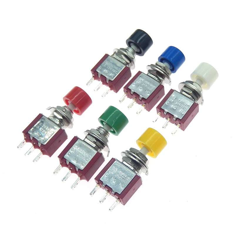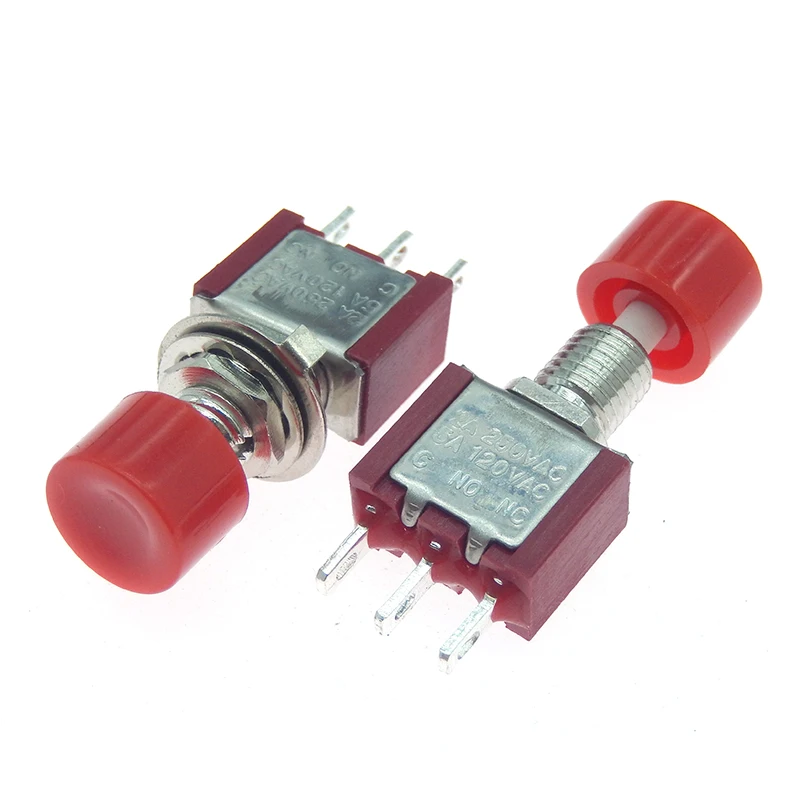 Comprar Mini interruptor de botón de retorno automático momentáneo, 1 piezas, 3 pines, C-NO-NC, 6MM, encendido-(encendido), 2a, 250VAC/5A, 120VAC