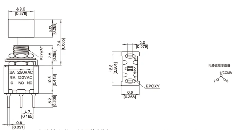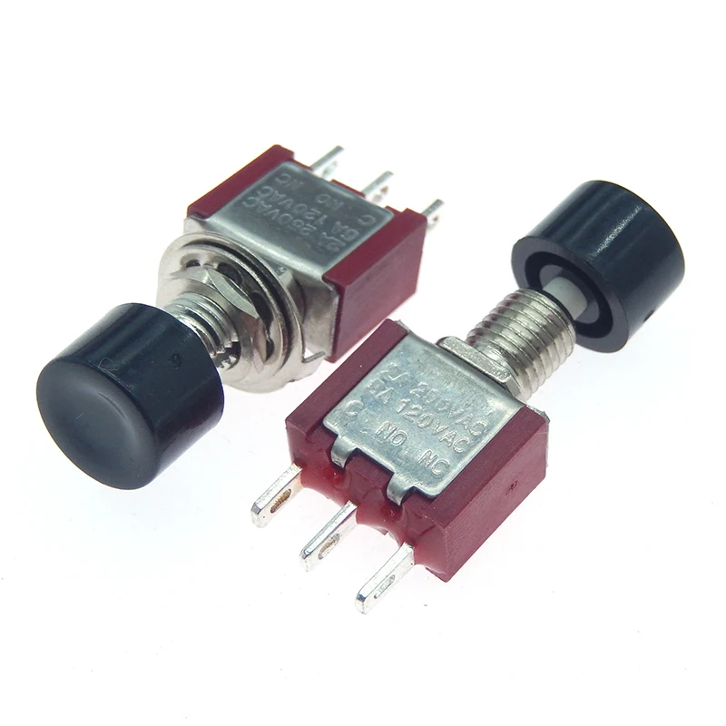 1 Uds. Mini interruptor de botón de retorno automático momentáneo de 3 pines C-NO-NC de 6mm ON-(ON) 2A 250VAC/5A 120VAC interruptores de palanca