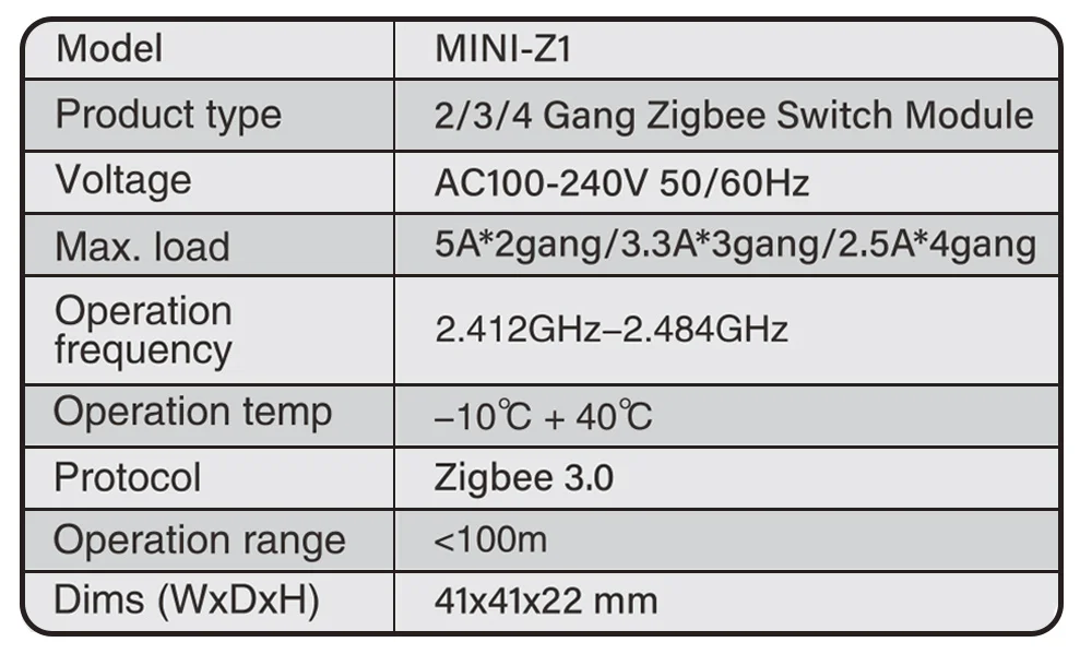 Tipo de producto: Módulo ZIGBEE de 2 bandas de interruptor/3 bandas/4 bandas