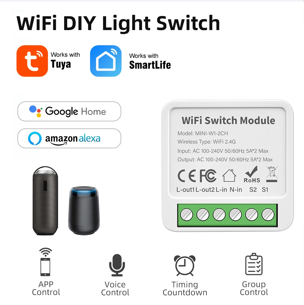 Mini interruptor inteligente Wifi compatible con temporizador de Control de 2/3/4 vías interruptor inalámbrico Compatible con Alexa y Google Home Alice