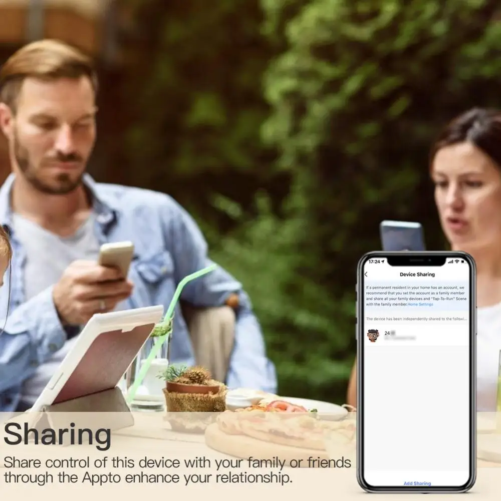 7. Compartir y seguridad. La cuenta principal se puede compartir con otros miembros de la familia, y las funciones y configuraciones se conservan y copian por completo; seguridad: una vez que la lámpara es agregada por la cuenta principal, la lámpara será y otros usuarios ya no podrán encontrar y añadir; Debe compartirse activamente antes de que otros puedan usarlo.