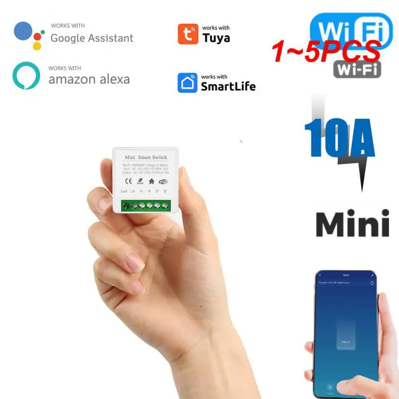Comprar Mini interruptor de luz inteligente con Wifi, Control de sincronización de 2 vías, módulo de automatización, aplicación para Alexa Home, Tuya, 16A, 1 a 5 unidades