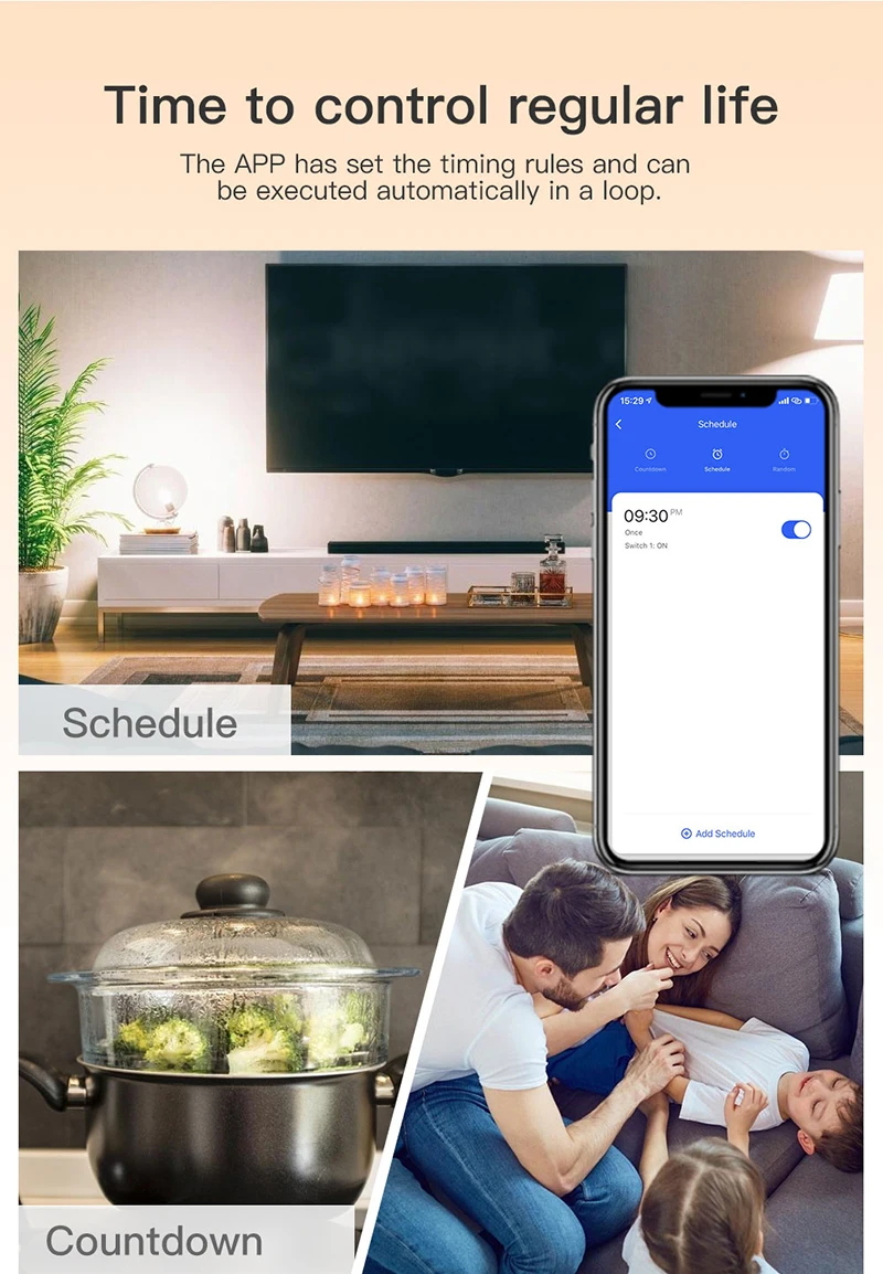 2. Control de aplicaciones móviles. Interruptor de control, sincronización, cuenta regresiva y otras funciones del dispositivo a través del teléfono móvil 2. Control por voz. Admite asistentes de voz como Tmall Wizard, Alexa, GoolHome, etc., para realizar funciones como interruptores;