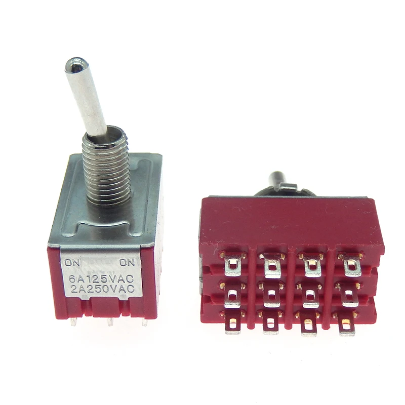 Mini interruptor de palanca rojo con Terminal de soldadura, 12 Pines, encendido y apagado, 3/2 posiciones, CA 6A/125V 2A/250V, resistente al agua, nuevo, 1 unidad