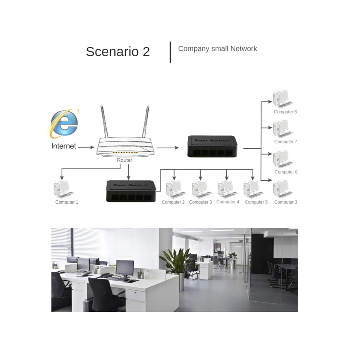 2.Arquitectura de conmutación sin bloqueo que avance y filtra paquetes a máxima velocidad del cable para un rendimiento máximo.Auto-MDI/MDIX elimina la necesidad de cables cruzados