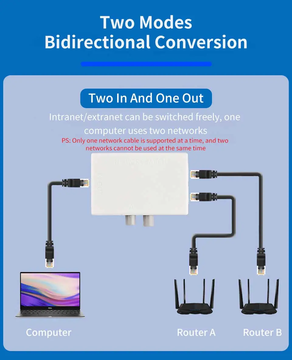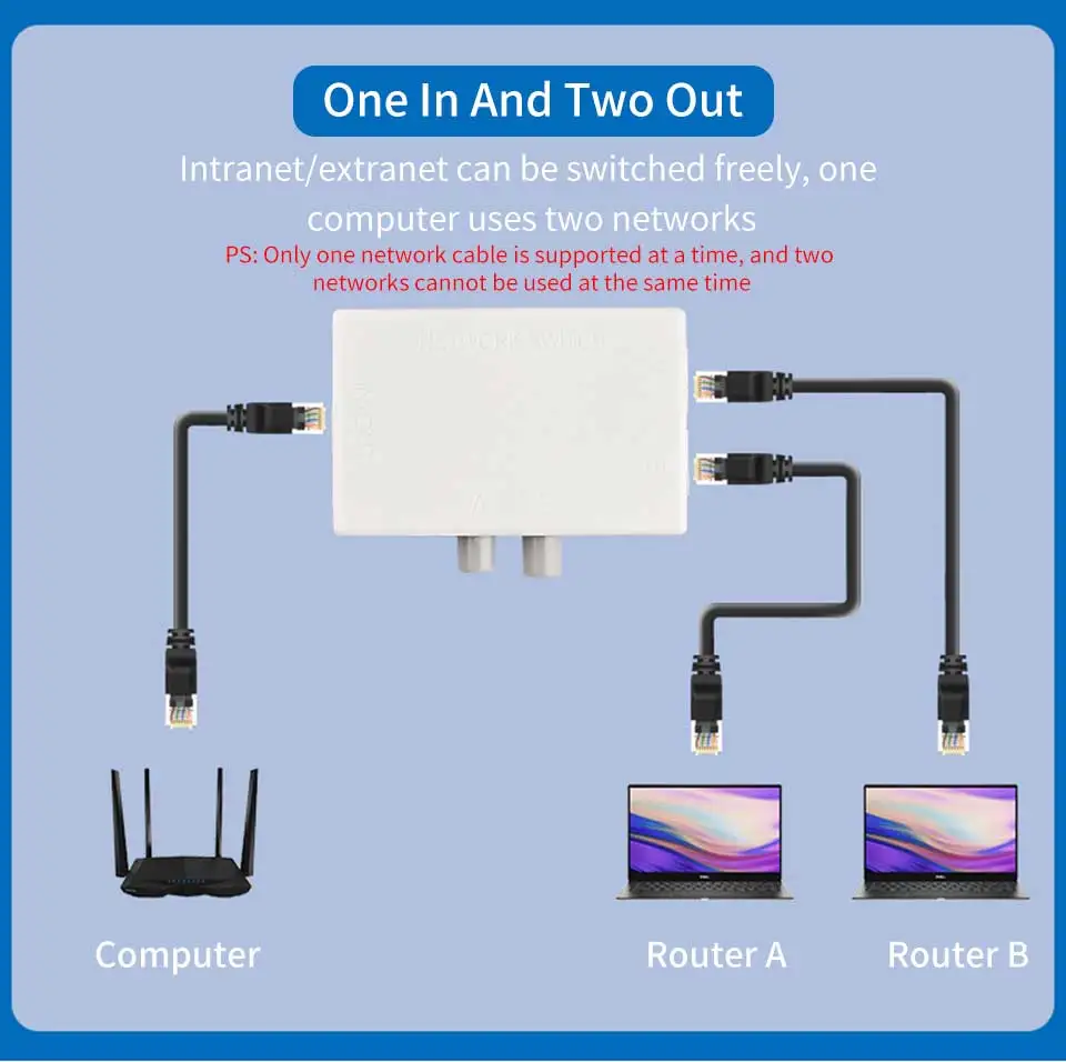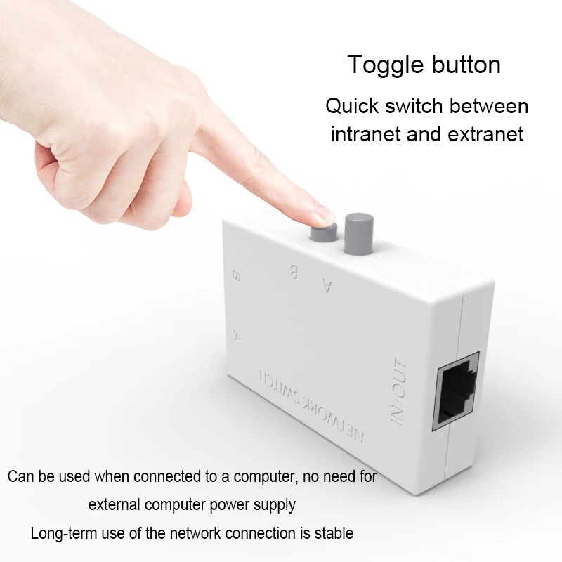 Mini interruptor de red RJ45 de 2 puertos, conmutador de intercambio Manual de doble puerto Ethernet, caja de red RJ45, adaptador de concentrador, divisor