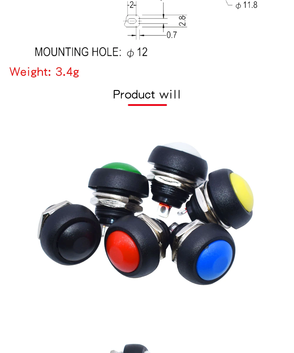 Comprar Mini interruptor redondo de encendido/apagado momentáneo impermeable, 12mm, 6 PBS-33B.