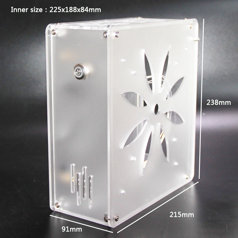 Comprar Mini itx carcasa de ordenador, chasis transparente esmerilado acrílico, diseño de interruptor de tapa de llave personalizado, admite tarjeta de red gráfica