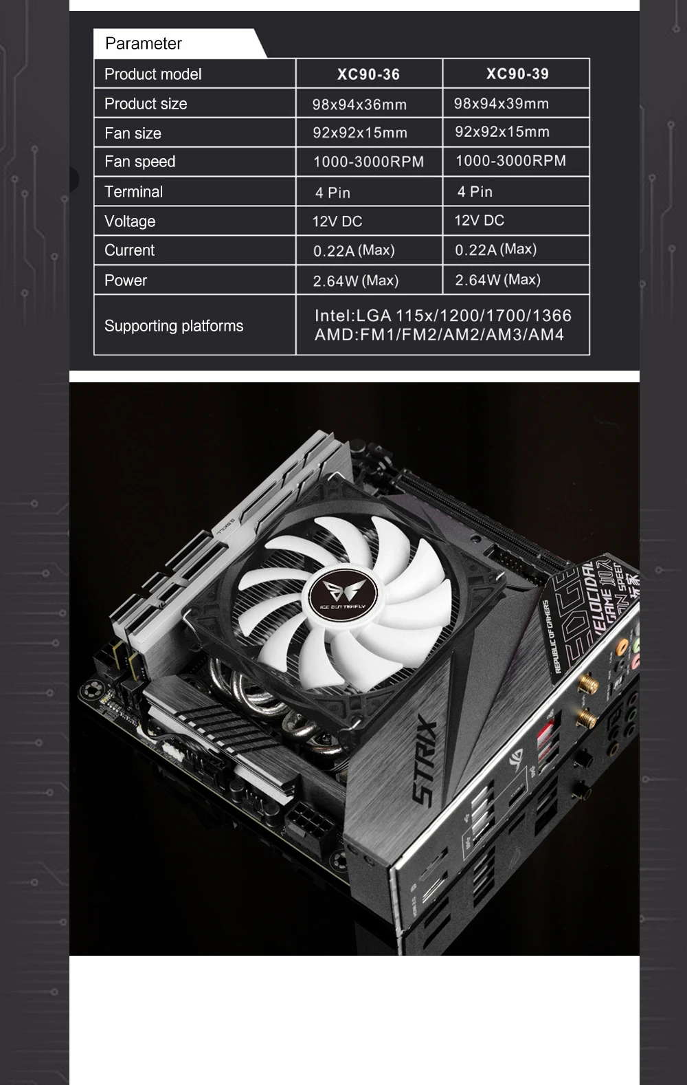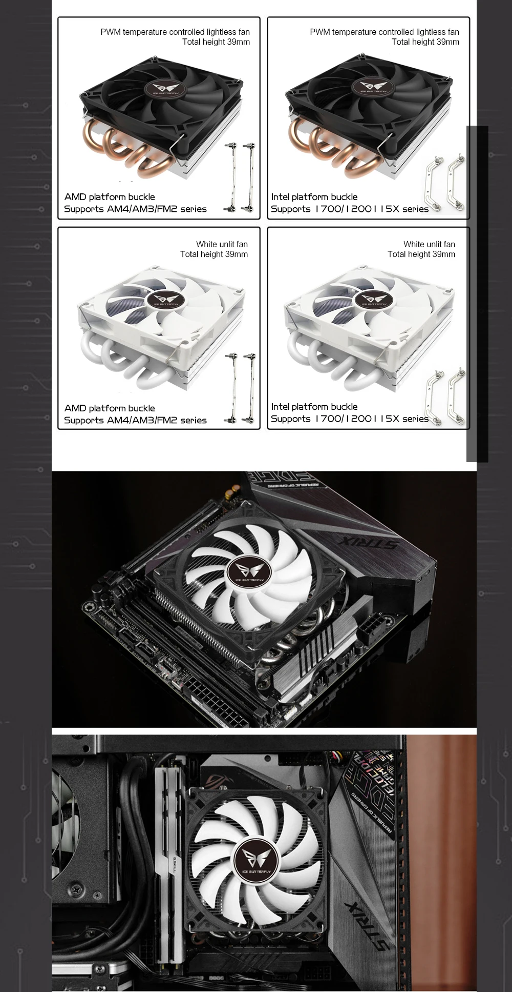 Comprar Mini ITX Case CPU Cooler 39mm ultrafino 4 tubos de calor CPU radiador refrigeración por aire para Intel 115X/775 AMD AM4 multiplataformas