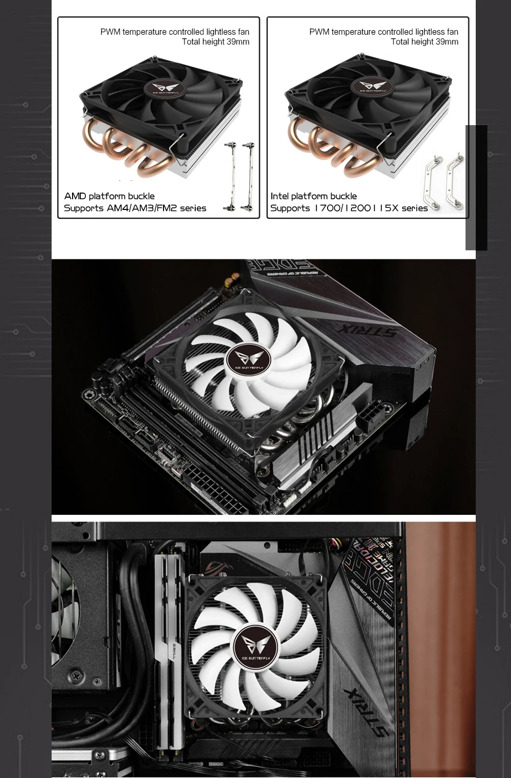 Comprar Mini ITX Case CPU enfriador de aire ultrafino H39mm 4 heatpipes de cobre radiador de CPU 4 pines PWM para plataformas AMD AM4/Intel 115X 1700
